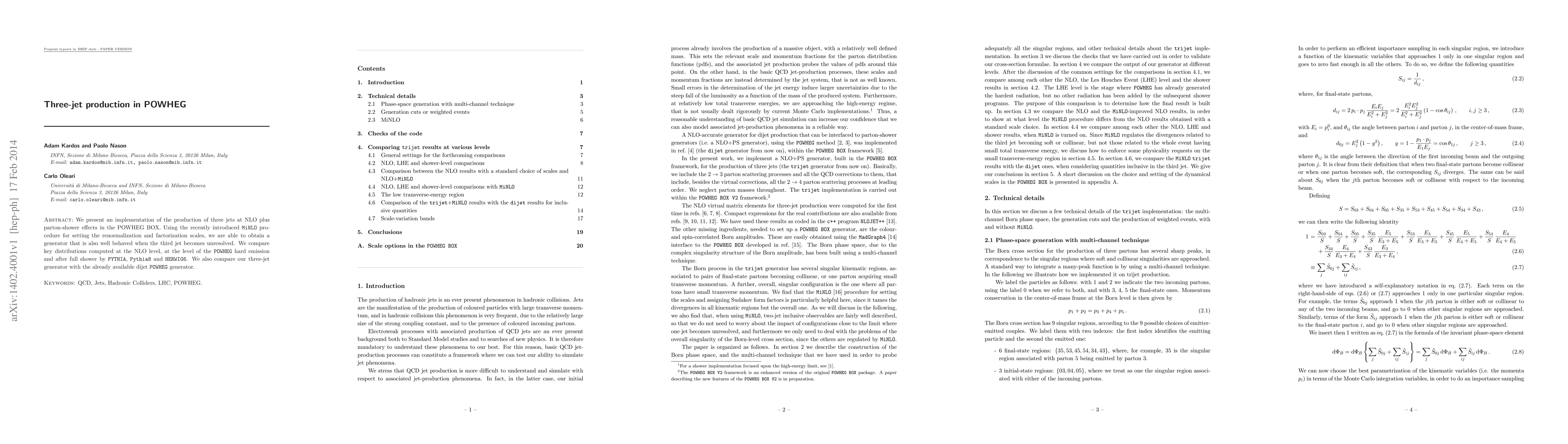 This paper implements three-jet production at NLO plus parton-shower effects using the POWHEG BOX and MiNLO procedure. It compares results with various simulation tools and assesses the performance of the new generator against existing dijet POWHEG implementations.
