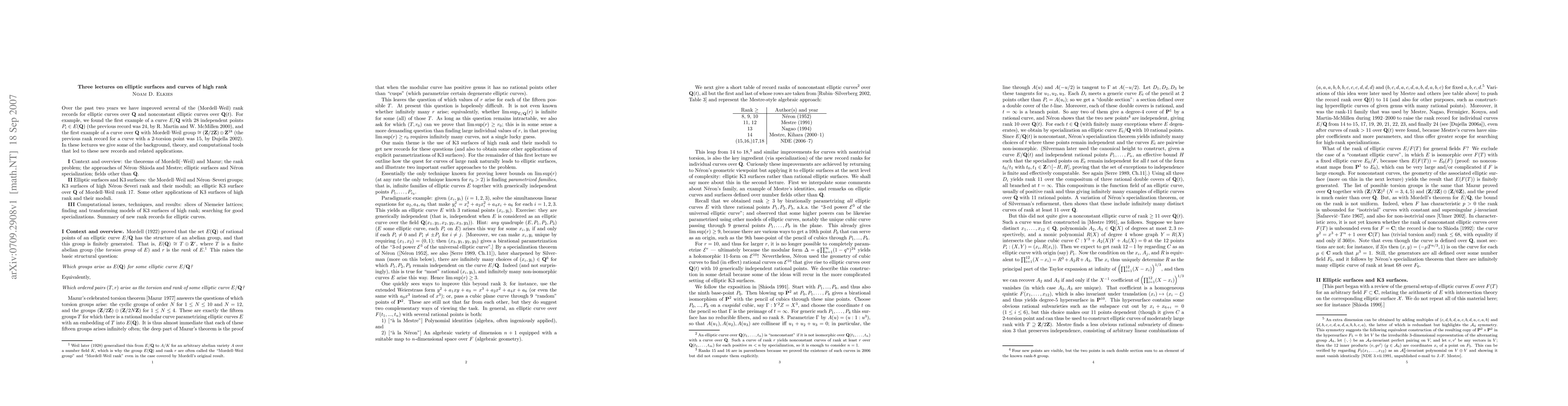 Over the past two years we have improved several of the (Mordell-Weil) rank records for elliptic curves over Q and nonconstant elliptic curves over Q(t). For example, we found the first example of a curve E/Q with 28 independent points P_i in E(Q) (the previous record was 24, by R.Martin and W.McMillen 2000), and the first example of a curve over Q with Mordell-Weil group isomorphic with (Z/2Z) x Z^18 (the previous rank record for a curve with a 2-torsion point was 15, by Dujella 2002). In these lectures we give some of the background, theory, and computational tools that led to these new records and related applications. I Context and overview: the theorems of Mordell(-Weil) and Mazur; the rank problem; the approaches of Neron--Shioda and Mestre; elliptic surfaces and Neron specialization; fields other than Q. II Elliptic surfaces and K3 surfaces: the Mordell-Weil and Neron-Severi groups; K3 surfaces of high Neron-Severi rank and their moduli; an elliptic K3 surface over Q of Mordell-Weil rank 17. Some other applications of K3 surfaces of high rank and their moduli. III Computational issues, techniques, and results: slices of Niemeier lattices; finding and transforming models of K3 surfaces of high rank; searching for good specializations. Summary of new rank records for elliptic curves.