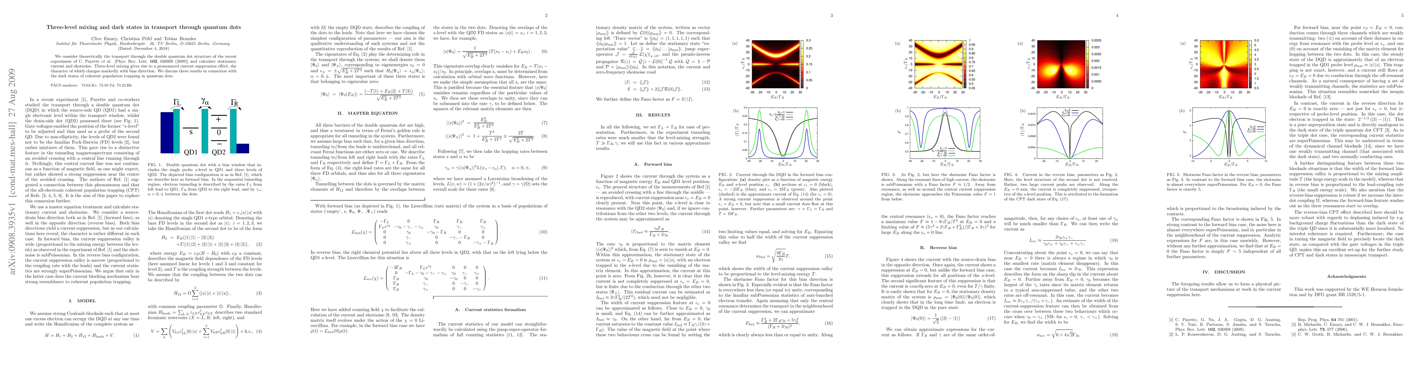 The study found that three-level mixing in quantum dots leads to a significant current suppression effect, which varies with bias direction. This phenomenon is related to dark states of coherent population trapping in quantum dots.