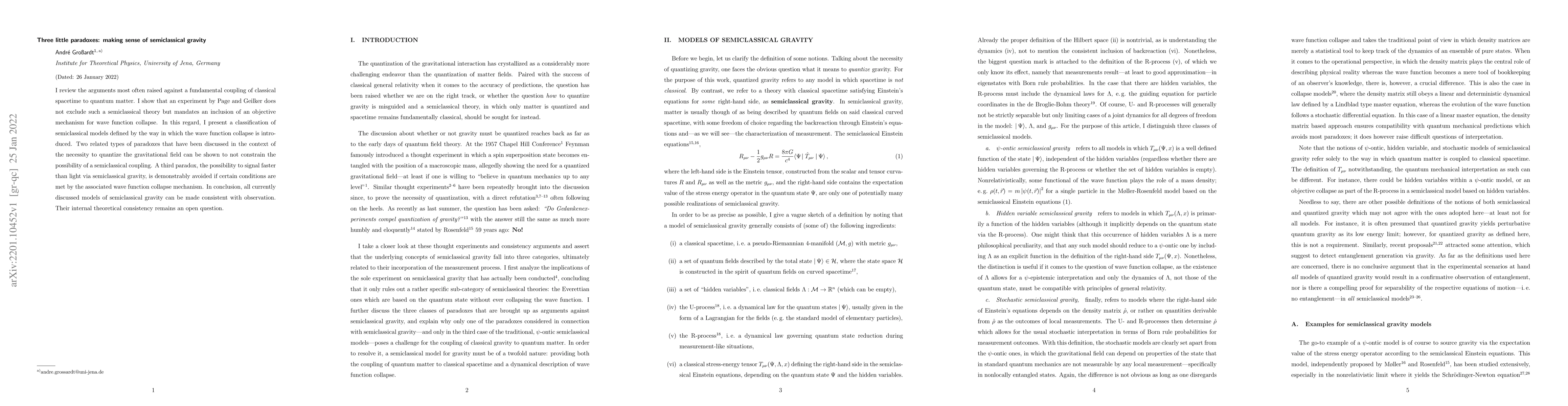 I review the arguments most often raised against a fundamental coupling of classical spacetime to quantum matter. I show that an experiment by Page and Geilker does not exclude such a semiclassical theory but mandates an inclusion of an objective mechanism for wave function collapse. In this regard, I present a classification of semiclassical models defined by the way in which the wave function collapse is introduced. Two related types of paradoxes that have been discussed in the context of the necessity to quantize the gravitational field can be shown to not constrain the possibility of a semiclassical coupling. A third paradox, the possibility to signal faster than light via semiclassical gravity, is demonstrably avoided if certain conditions are met by the associated wave function collapse mechanism. In conclusion, all currently discussed models of semiclassical gravity can be made consistent with observation. Their internal theoretical consistency remains an open question.