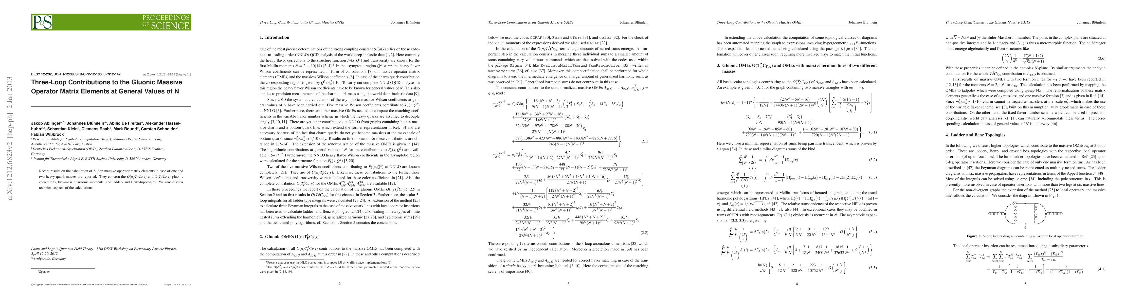 Recent results on the calculation of 3-loop massive operator matrix elements in case of one and two heavy quark masses are reported. They concern the $O(n_f T_F^2 C_{F,A})$ and $O(T_F^2 C_{F,A})$ gluonic corrections, two-mass quarkonic moments, and ladder- and Benz-topologies. We also discuss technical aspects of the calculations.