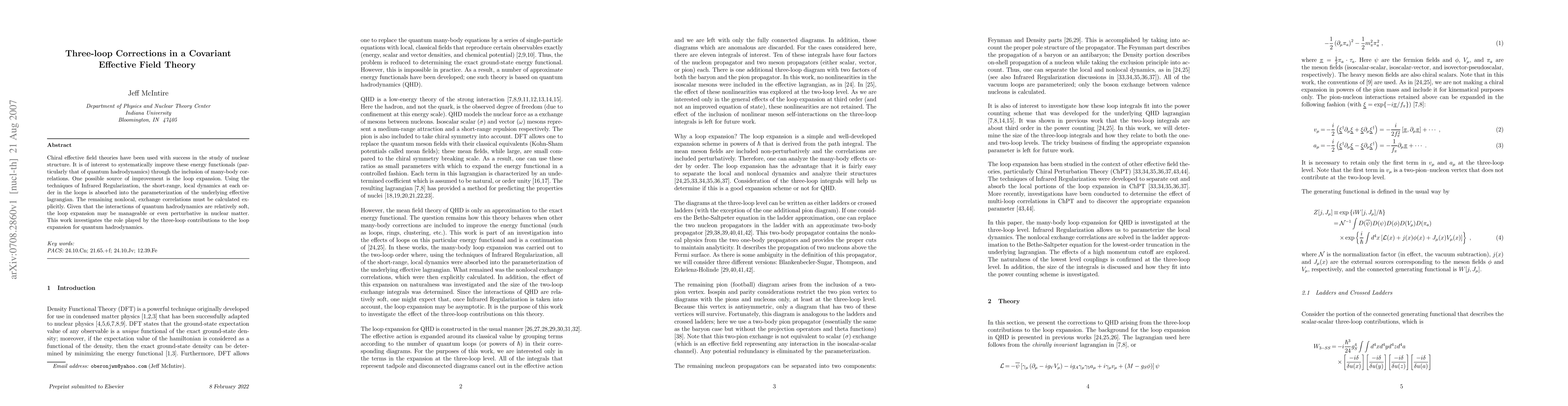 Chiral effective field theories have been used with success in the study of nuclear structure. It is of interest to systematically improve these energy functionals (particularly that of quantum hadrodynamics) through the inclusion of many-body correlations. One possible source of improvement is the loop expansion. Using the techniques of Infrared Regularization, the short-range, local dynamics at each order in the loops is absorbed into the parameterization of the underlying effective lagrangian. The remaining nonlocal, exchange correlations must be calculated explicitly. Given that the interactions of quantum hadrodynamics are relatively soft, the loop expansion may be manageable or even perturbative in nuclear matter. This work investigates the role played by the three-loop contributions to the loop expansion for quantum hadrodynamics.