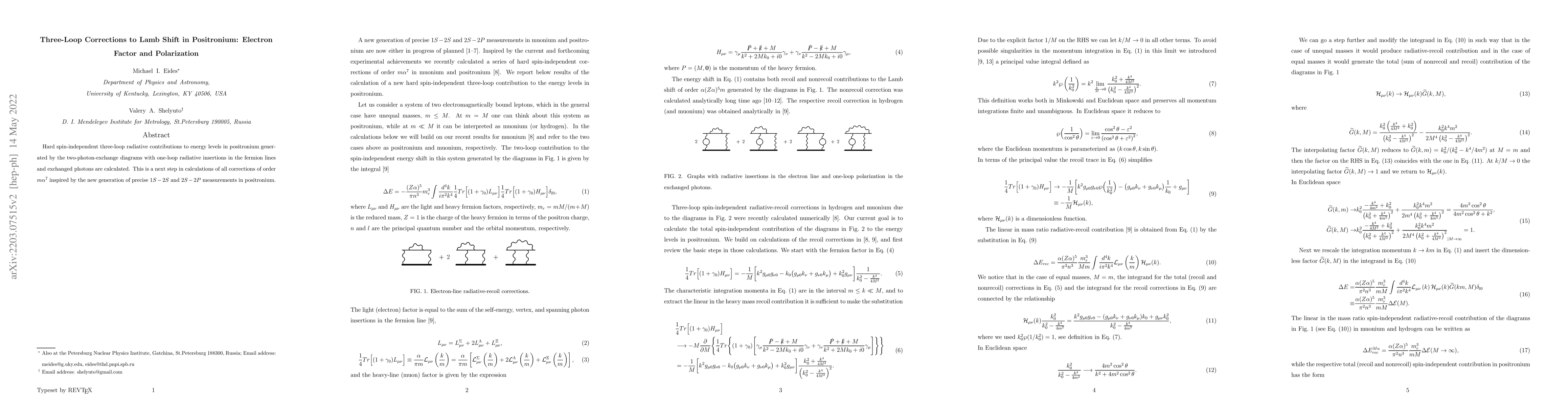 Summary: This paper calculates hard spin-independent three-loop radiative corrections to positronium's Lamb shift, focusing on two-photon-exchange diagrams with one-loop insertions, contributing to the $m\alpha^7$ order corrections. It aims to refine measurements of $1S-2S$ and $2S-2P$ transitions in positronium.