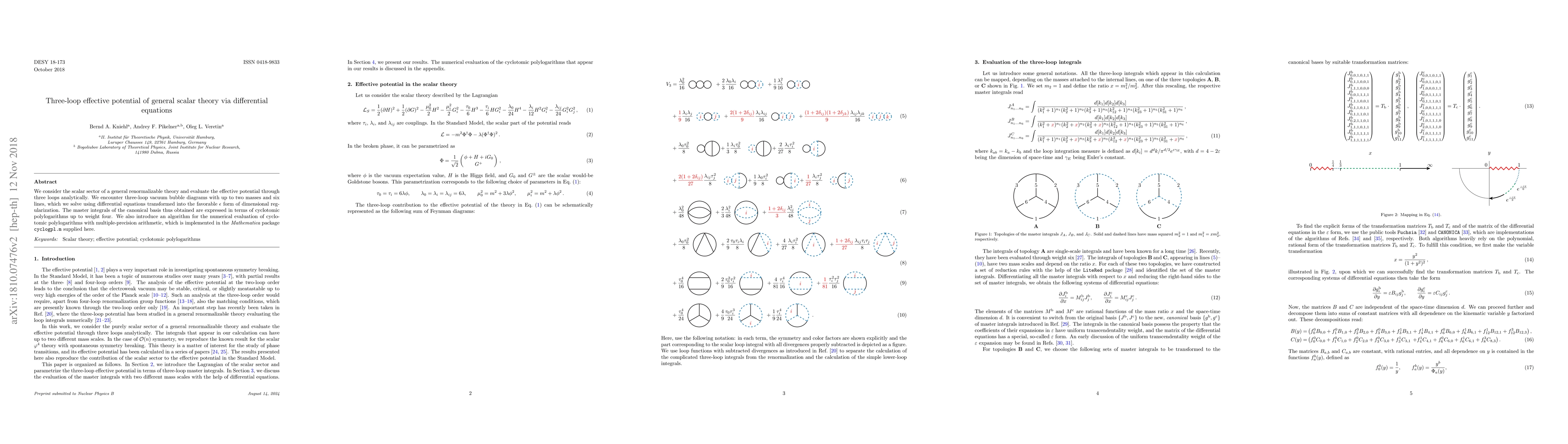 Researchers developed a method to calculate the effective potential of a general scalar theory up to three loops using differential equations, resulting in expressions involving cyclotomic polylogarithms.