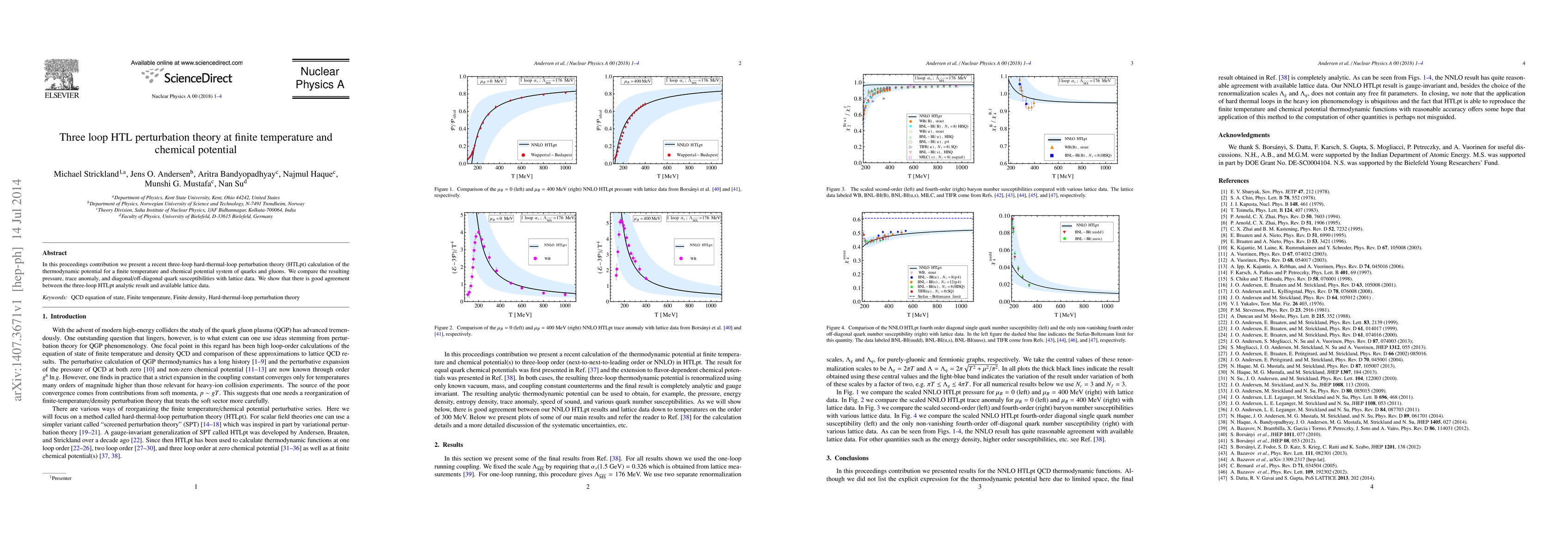 In this proceedings contribution we present a recent three-loop hard-thermal-loop perturbation theory (HTLpt) calculation of the thermodynamic potential for a finite temperature and chemical potential system of quarks and gluons. We compare the resulting pressure, trace anomaly, and diagonal/off-diagonal quark susceptibilities with lattice data. We show that there is good agreement between the three-loop HTLpt analytic result and available lattice data.