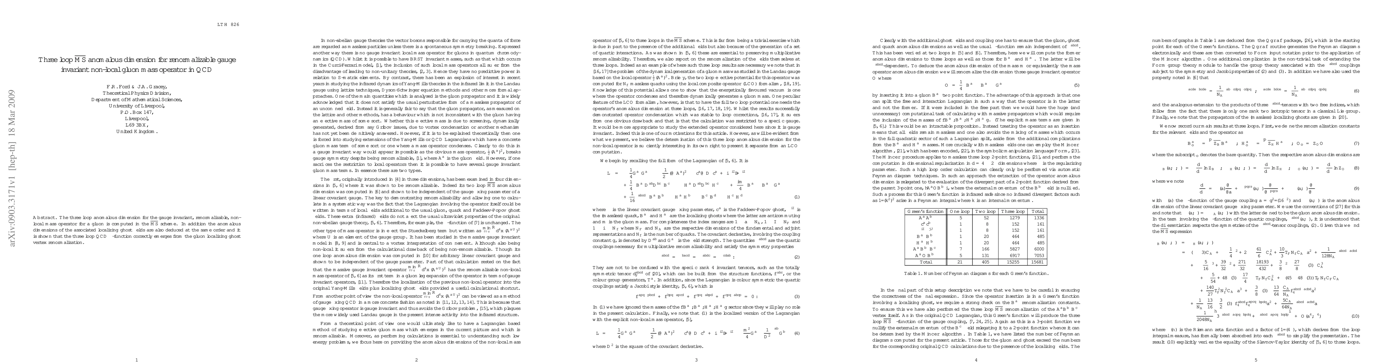 The three loop anomalous dimension for the gauge invariant, renormalizable, non-local mass operator for a gluon is computed in the MSbar scheme. In addition the anomalous dimensions of the associated localizing ghost fields are also deduced at the same order and it is shown that the three loop QCD beta-function correctly emerges from the gluon localizing ghost vertex renormalization.