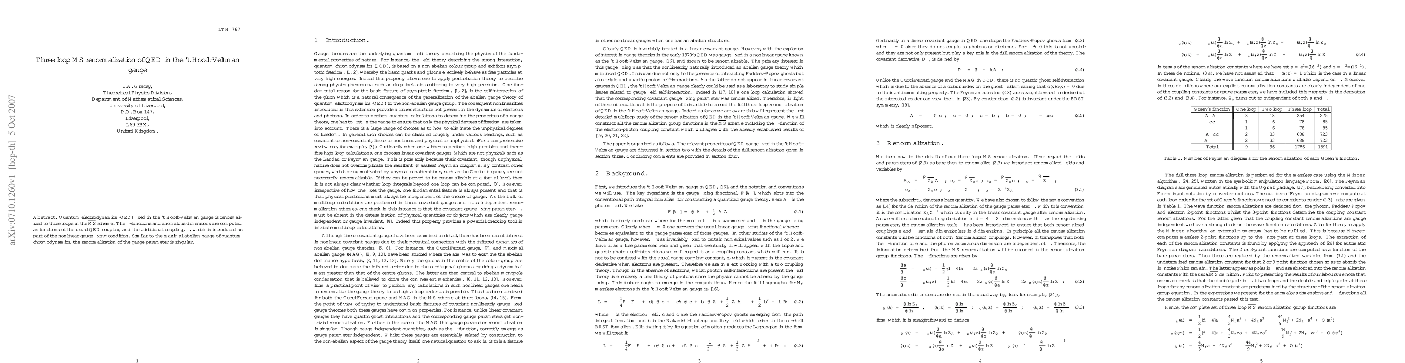 Quantum electrodynamics (QED) fixed in the 't~Hooft-Veltman gauge is renormalized to three loops in the MSbar scheme. The beta-functions and anomalous dimensions are computed as functions of the usual QED coupling and the additional coupling, xi, which is introduced as part of the nonlinear gauge fixing condition. Similar to the maximal abelian gauge of quantum chromodynamics, the renormalization of the gauge parameter is singular.