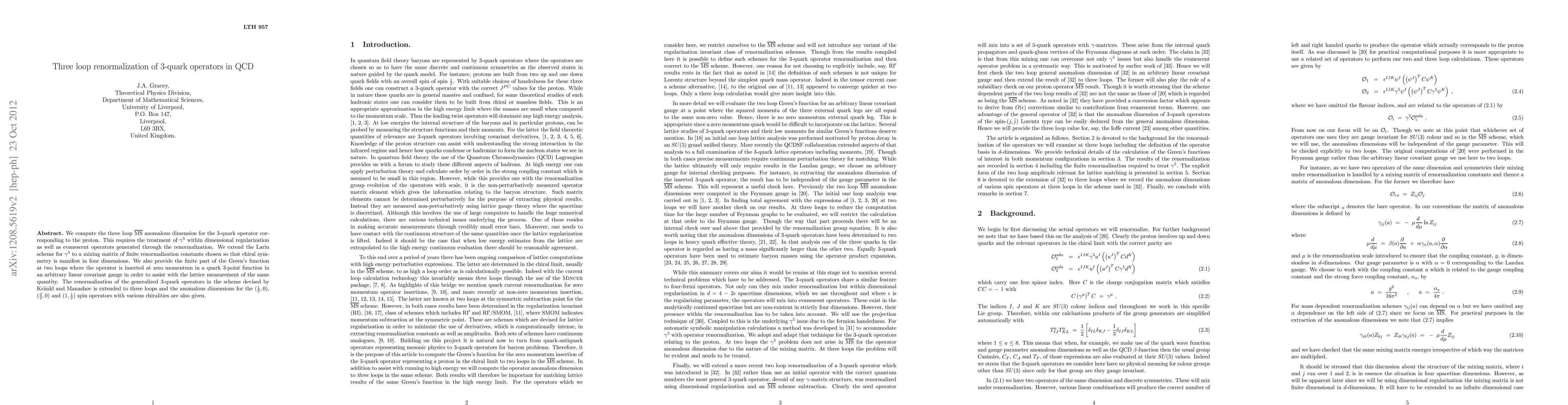 This paper computes the three-loop MSbar anomalous dimension for 3-quark operators in QCD, extending the Larin scheme for gamma^5 and providing the finite part of the Green's function for lattice measurements. The renormalization of generalized 3-quark operators is extended to three loops, with results for various spin operators and chiralities.