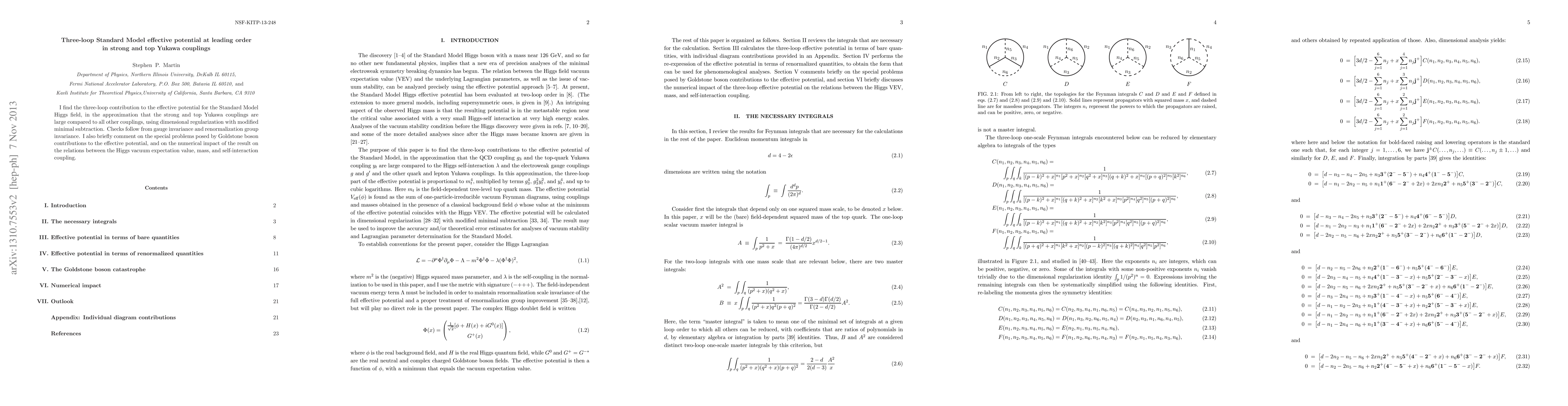 Researchers used dimensional regularization to calculate the three-loop contribution to the Standard Model Higgs field's effective potential, considering strong and top Yukawa couplings as dominant. The study provides insight into the relations between the Higgs vacuum expectation value, mass, and self-interaction coupling.
