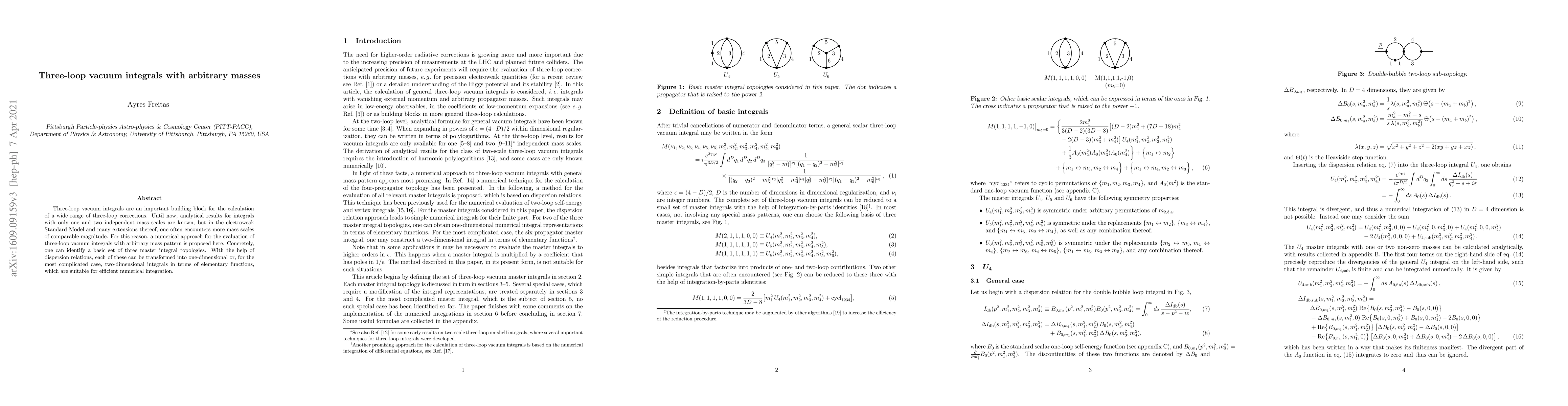 The paper introduces a novel method based on dispersion relations for evaluating three-loop vacuum integrals with arbitrary mass patterns, transforming them into one- or two-dimensional numerical integrals.