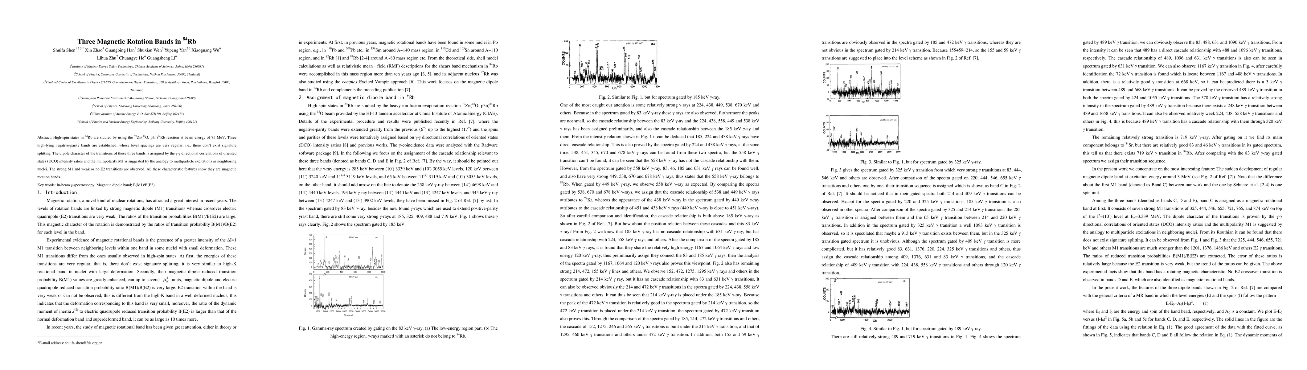 High-spin states in $^{84}$Rb are studied by using the $^{70}$Zn($^{18}$O, p3n)$^{84}$Rb reaction at beam energy of 75 MeV. Three high-lying negative-parity bands are established, whose level spacings are very regular, i.e., there don't exist signature splitting. The dipole character of the transitions of these three bands is assigned by the $\gamma$-$\gamma$ directional correlations of oriented states (DCO) intensity ratios and the multipolarity M1 is suggested by the analogy to multiparticle excitations in neighboring nuclei. The strong M1 and weak or no E2 transitions are observed. All these characteristic features show they are magnetic rotation bands.