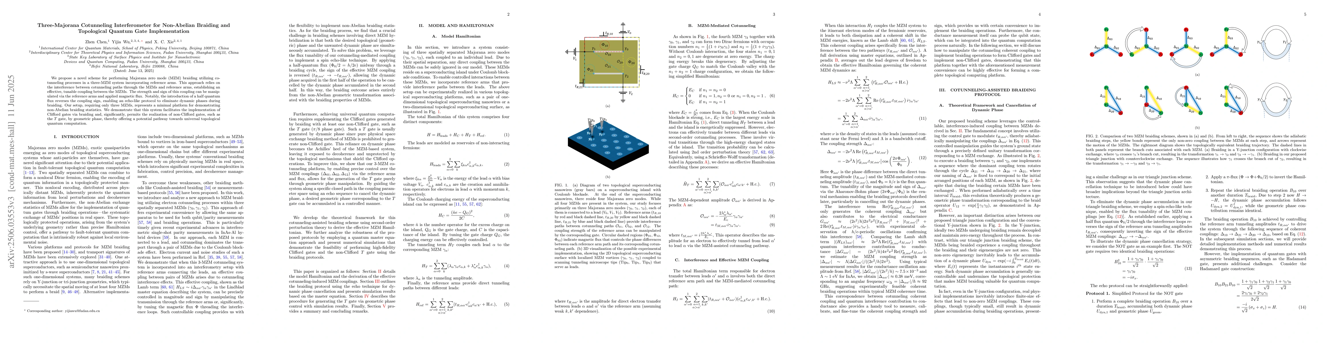 This paper proposes a novel scheme for performing Majorana zero mode braiding using cotunneling processes in a three-MZM system, enabling non-Abelian braiding statistics and topological quantum gate implementation.