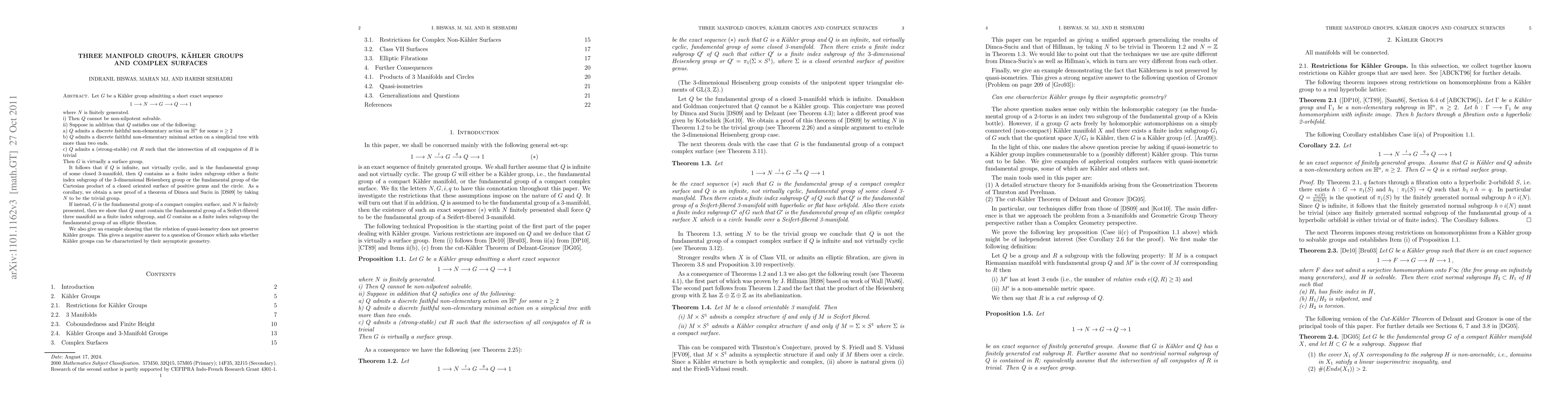 The paper investigates the relationship between Kaehler groups and fundamental groups of 3-manifolds, revealing new insights into their structure and properties.