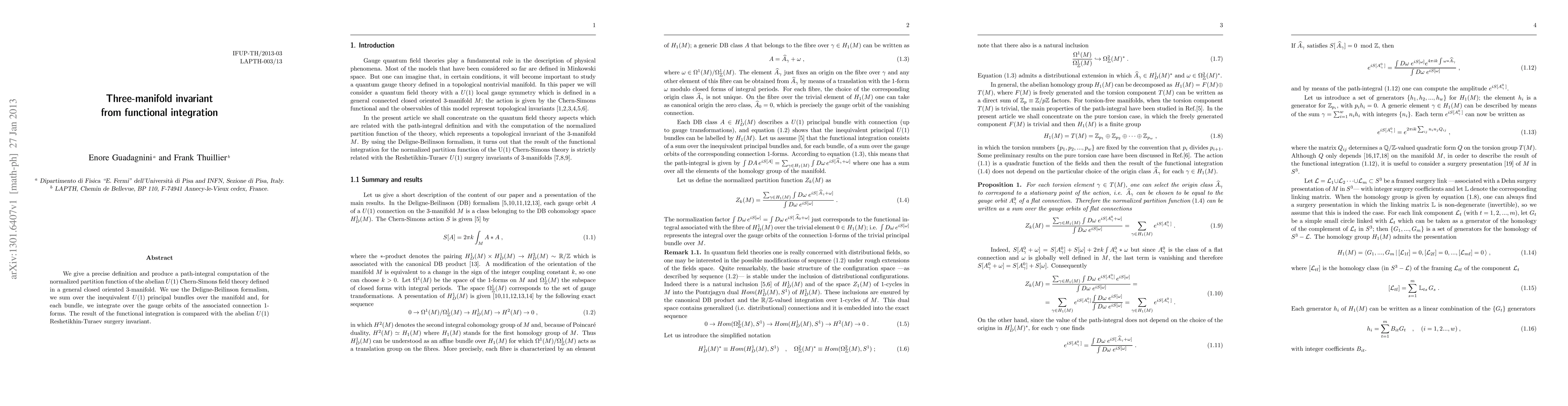 We give a precise definition and produce a path-integral computation of the normalized partition function of the abelian U(1) Chern-Simons field theory defined in a general closed oriented 3-manifold. We use the Deligne-Beilinson formalism, we sum over the inequivalent U(1) principal bundles over the manifold and, for each bundle, we integrate over the gauge orbits of the associated connection 1- forms. The result of the functional integration is compared with the abelian U(1) Reshetikhin-Turaev surgery invariant.