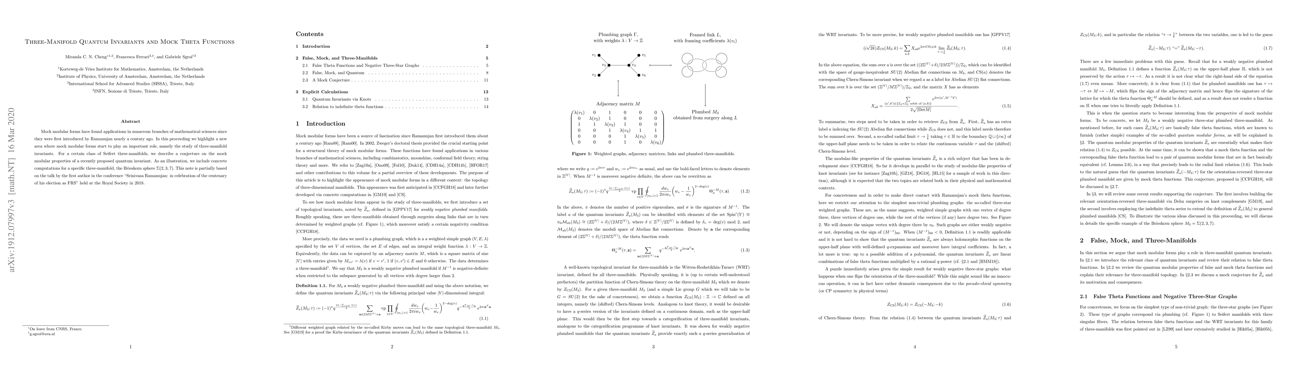 Researchers propose a new area where mock modular forms apply to three-manifold invariants, describing a conjecture on the quantum invariant properties of certain Seifert three-manifolds.