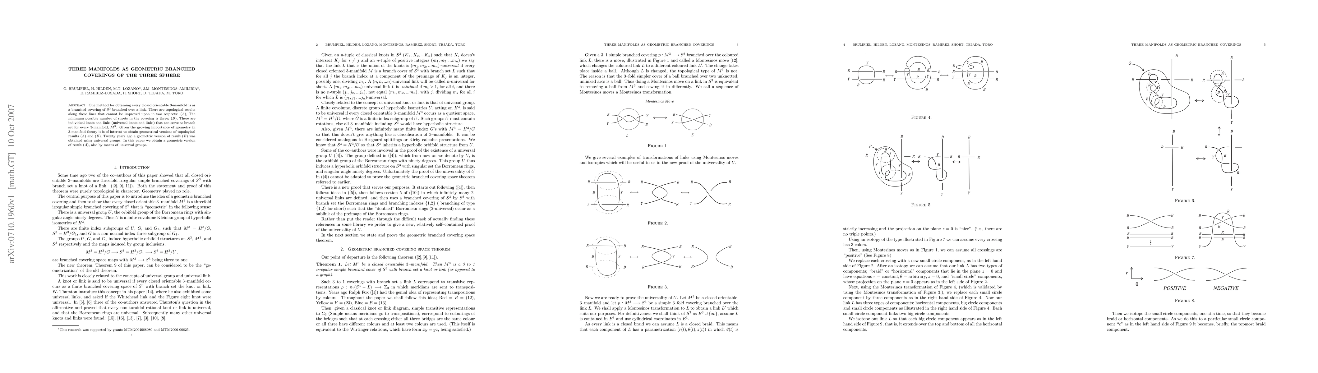 One method for obtaining every closed orientable 3-manifold is as branched covering of the 3-sphere over a link. There is a classical topological result showing that the minimun possible number of sheets in the covering is three. In this paper we obtain a geometric version of this result. The interest is given by the growing importance of geometry in 3-manifolds theory.