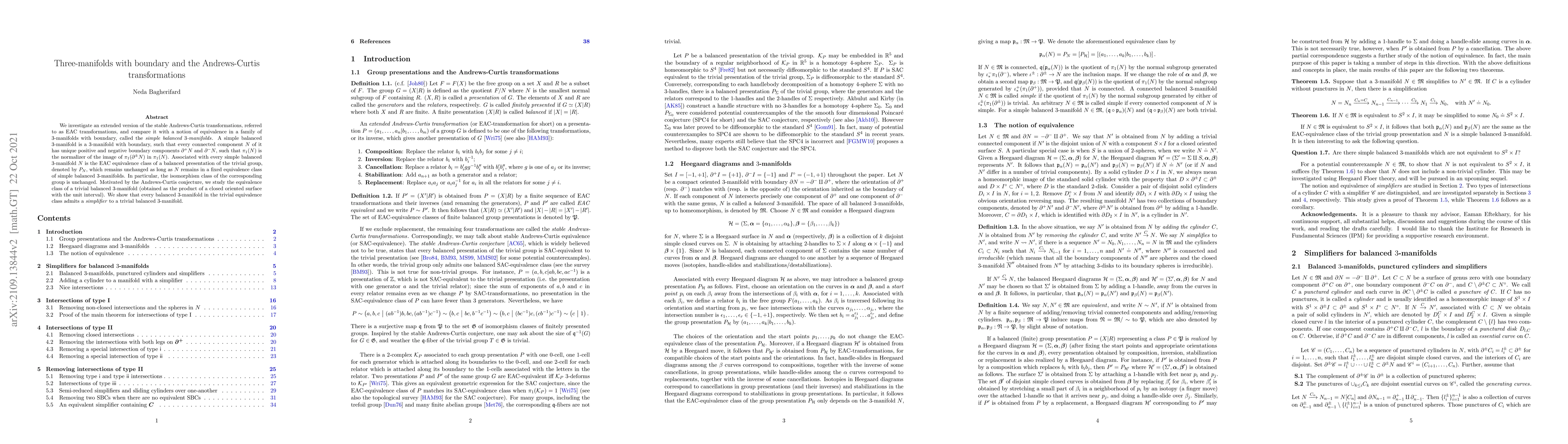 We investigate an extended version of the stable Andrews-Curtis transformations, referred to as EAC transformations, and compare it with a notion of equivalence in a family of $3$-manifolds with boundary, called the {\emph{simple balanced $3$-manifolds}}. A simple balanced $3$-manifold is a $3$-manifold with boundary, such that every connected component $N$ of it has unique positive and negative boundary components $\partial^+N$ and $\partial^-N$, such that $\pi_1(N)$ is the normalizer of the image of $\pi_1(\partial^\pm N)$ in $\pi_1(N)$. Associated with every simple balanced $3$-manifold $N$ is the EAC equivalence class of a balanced presentation of the trivial group, denoted by $P_N$, which remains unchanged as long as $N$ remains in a fixed equivalence class of simple balanced $3$-manifolds. In particular, the isomorphism class of the corresponding group is unchanged. Motivated by the Andrews-Curtis conjecture, we study the equivalence class of a trivial balanced $3$-manifold (obtained as the product of a closed oriented surface with the unit interval). We show that every balanced $3$-manifold in the trivial equivalence class admits a {\emph{simplifier}} to a trivial balanced $3$-manifold.