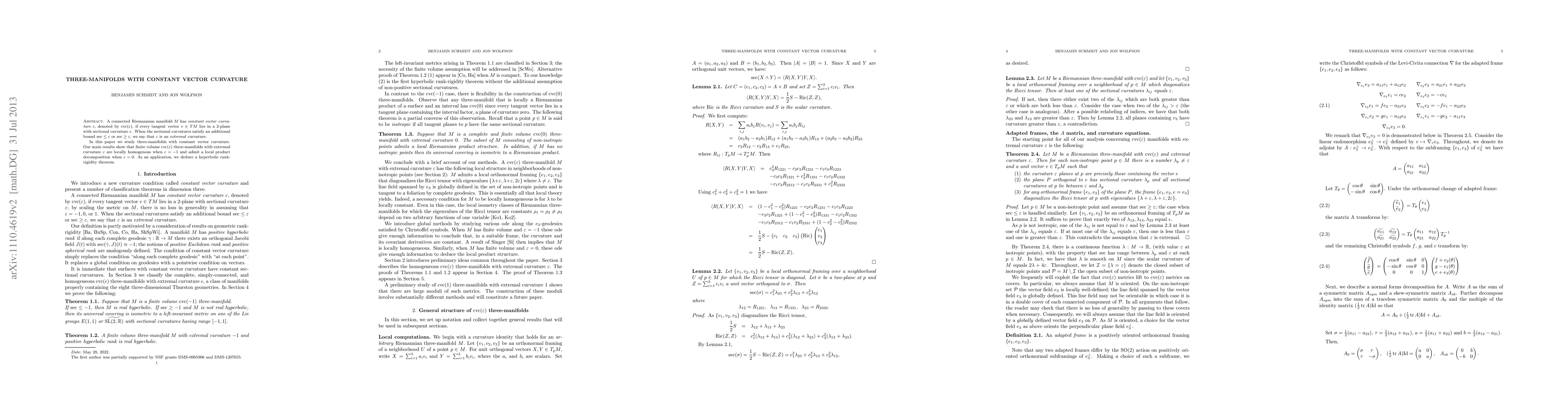 This paper investigates three-manifolds with constant vector curvature, demonstrating that finite volume manifolds with extremal curvature are locally homogeneous when the curvature is -1 and locally product-decomposible when the curvature is 0. The findings also lead to a hyperbolic rank-rigidity theorem.