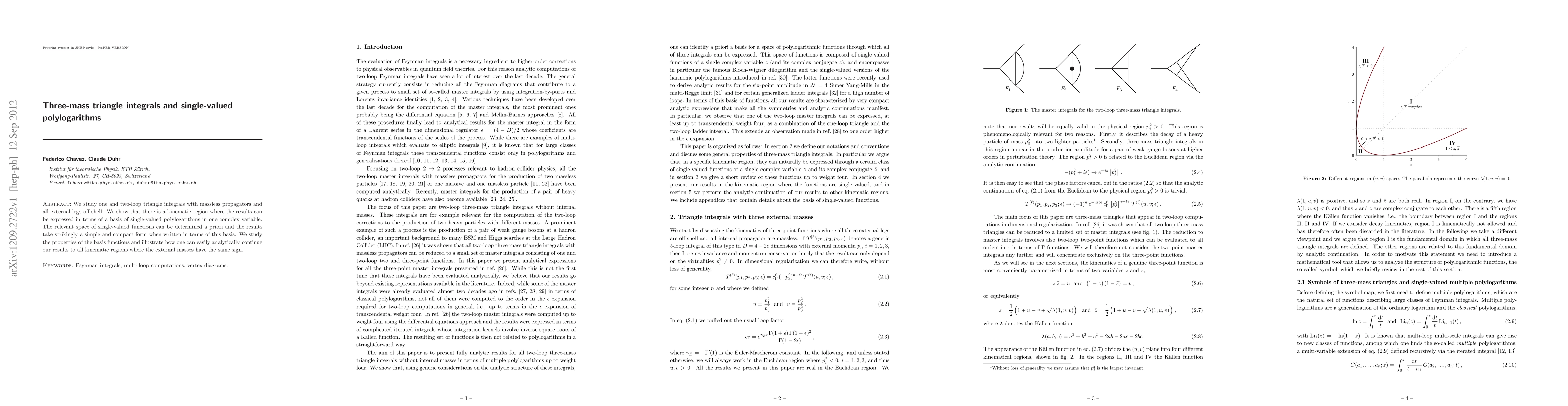 This paper investigates one and two-loop triangle integrals with off-shell external legs, demonstrating that results in a specific kinematic region can be expressed using single-valued polylogarithms. The authors derive a simple and compact form for these integrals when represented in terms of this basis, and illustrate the analytical continuation of the results to regions with uniform external mass signs.