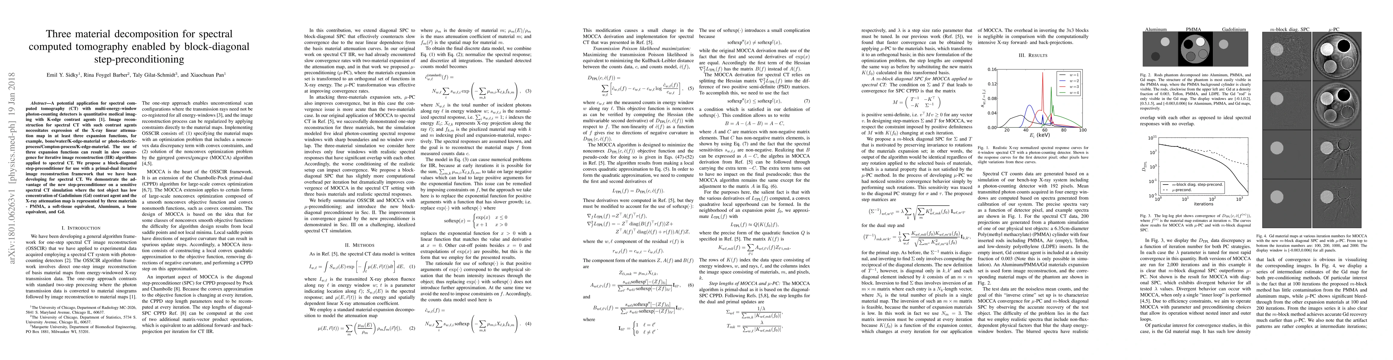 MOCCA is applied to spectral CT data with a new m-block diagonal step-preconditioner