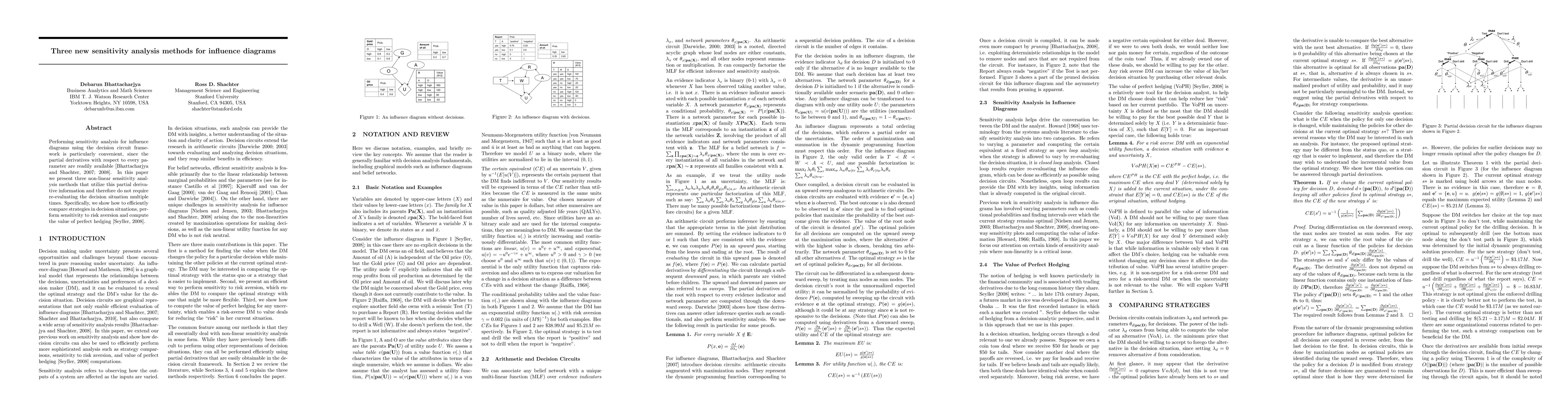 This paper introduces three new non-linear sensitivity analysis methods for influence diagrams, leveraging partial derivatives without re-evaluating decision scenarios. The methods efficiently compare strategies, assess sensitivity to risk aversion, and compute the value of perfect hedging.