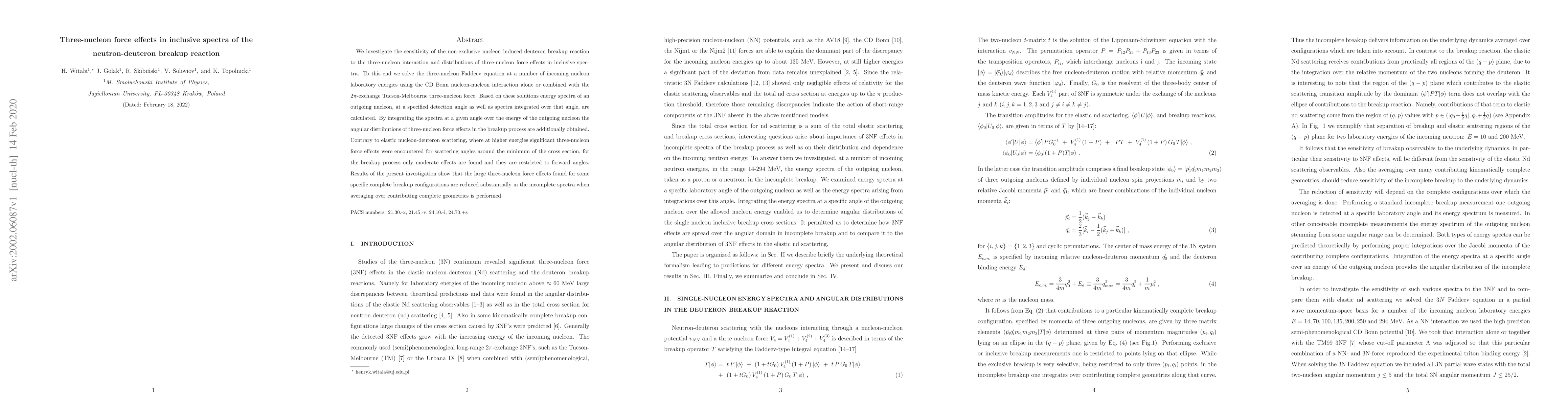 This paper investigates the impact of three-nucleon forces on inclusive spectra in neutron-deuteron breakup reactions, finding moderate effects primarily in forward angles. The study uses the three-nucleon Faddeev equation with the CD Bonn interaction and the Tucson-Melbourne three-nucleon force, revealing that large effects observed in specific configurations are significantly reduced in averaged incomplete spectra.