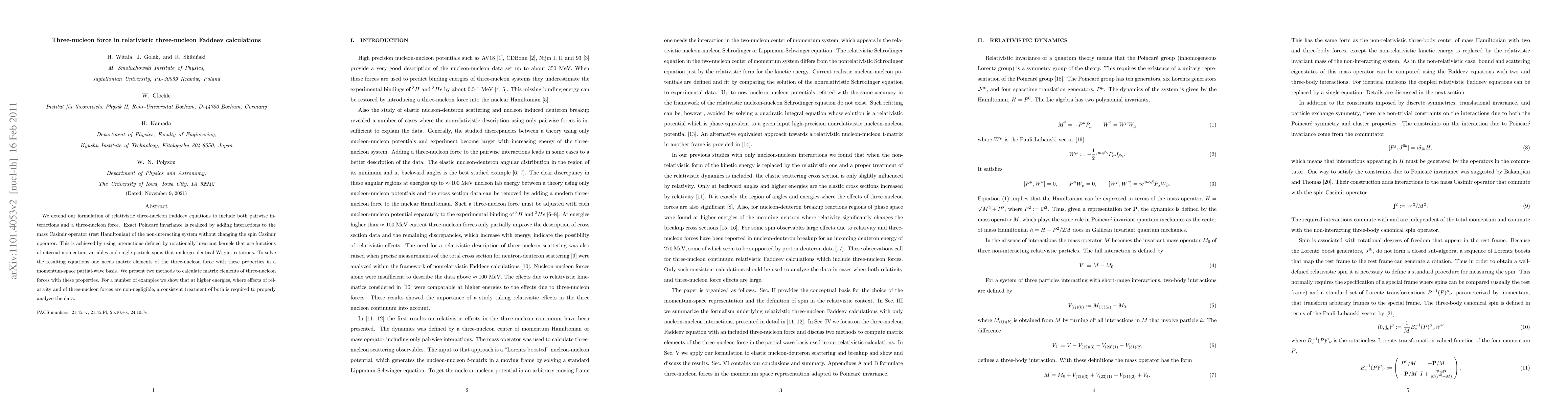 The research extends relativistic three-nucleon Faddeev equations to include both pairwise interactions and a three-nucleon force, maintaining Poincaré invariance by adding interactions to the mass Casimir operator without altering the spin Casimir operator. This is achieved using rotationally invariant kernels dependent on internal momentum variables and single-particle spins undergoing identical Wigner rotations.