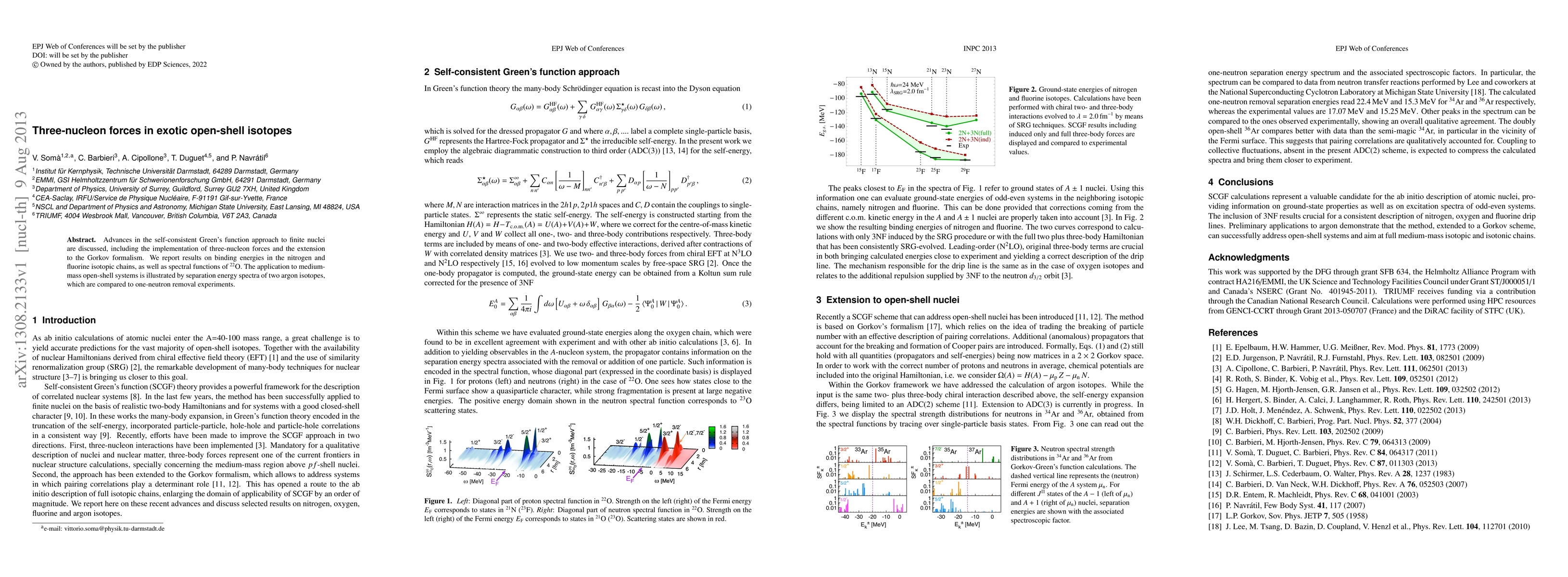 Advances in the self-consistent Green's function approach to finite nuclei are discussed, including the implementation of three-nucleon forces and the extension to the Gorkov formalism. We report results on binding energies in the nitrogen and fluorine isotopic chains, as well as spectral functions of 22O. The application to medium-mass open-shell systems is illustrated by separation energy spectra of two argon isotopes, which are compared to one-neutron removal experiments.