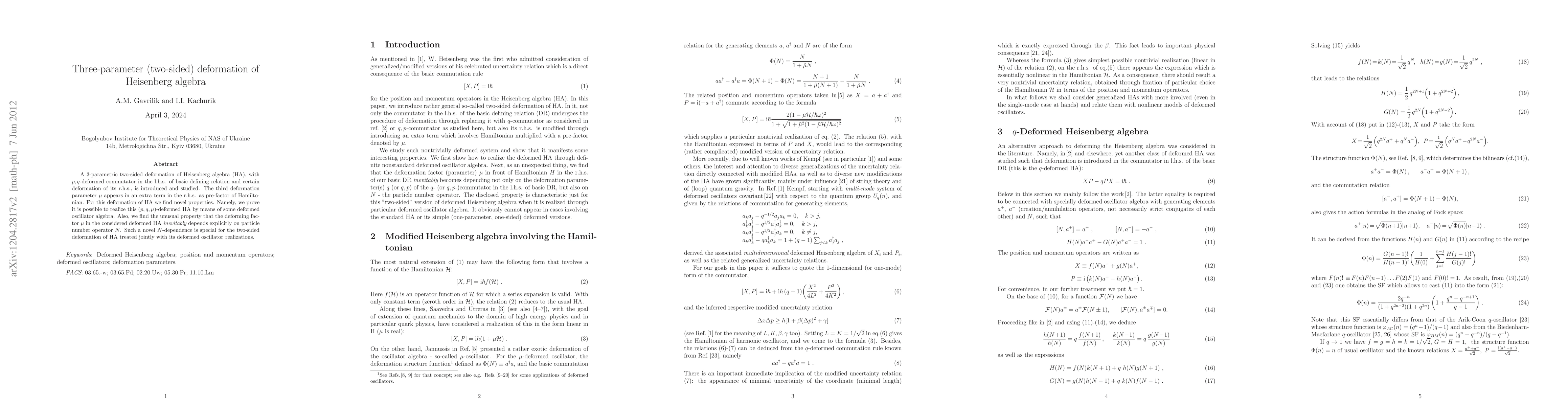 A 3-parametric two-sided deformation of Heisenberg algebra (HA), with p,q-deformed commutator in the l.h.s. of basic defining relation and certain deformation of its r.h.s., is introduced and studied. The third deformation parameter \mu appears in an extra term in the r.h.s. as pre-factor of Hamiltonian. For this deformation of HA we find novel properties. Namely, we prove it is possible to realize this (p,q,\mu)-deformed HA by means of some deformed oscillator algebra. Also, we find the unusual property that the deforming factor \mu\ in the considered deformed HA inevitably depends explicitly on particle number operator N. Such a novel N-dependence is special for the two-sided deformation of HA treated jointly with its deformed oscillator realizations.