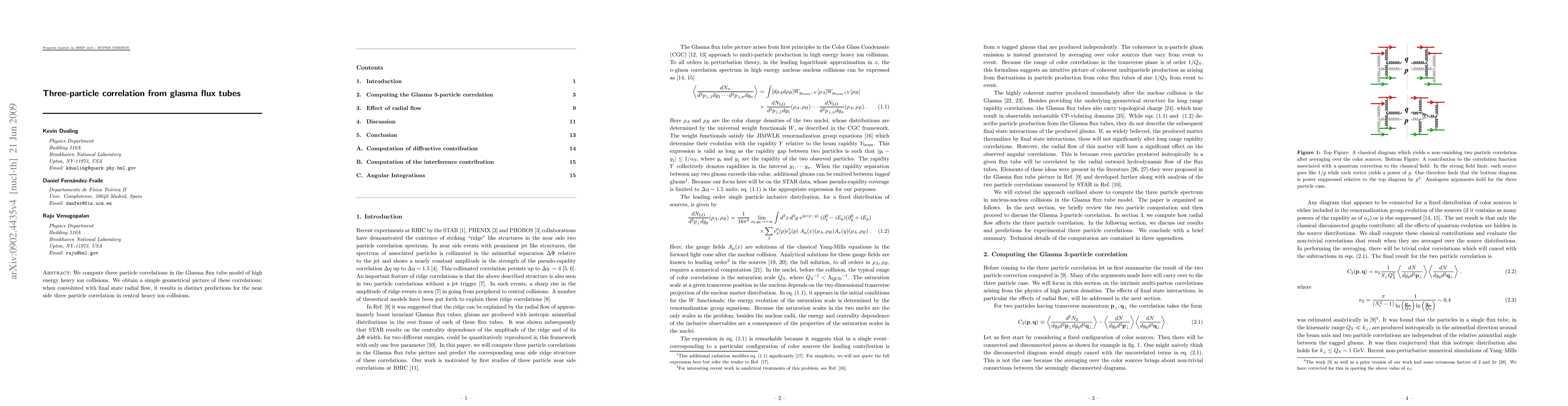 Researchers calculated three-particle correlations in high-energy heavy ion collisions using the Glasma flux tube model, revealing distinct predictions for near-side particle correlation patterns.