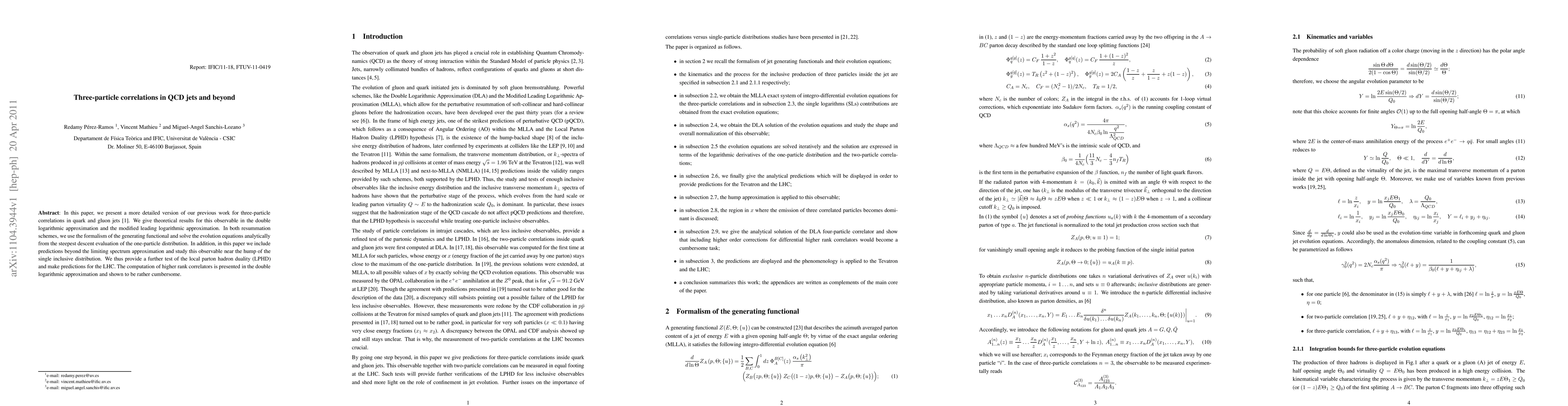 This paper provides detailed theoretical results for three-particle correlations in QCD jets, employing the double logarithmic and modified leading logarithmic approximations. It extends previous work by including predictions beyond the limiting spectrum approximation and testing the local parton hadron duality near the hump of the single inclusive distribution.