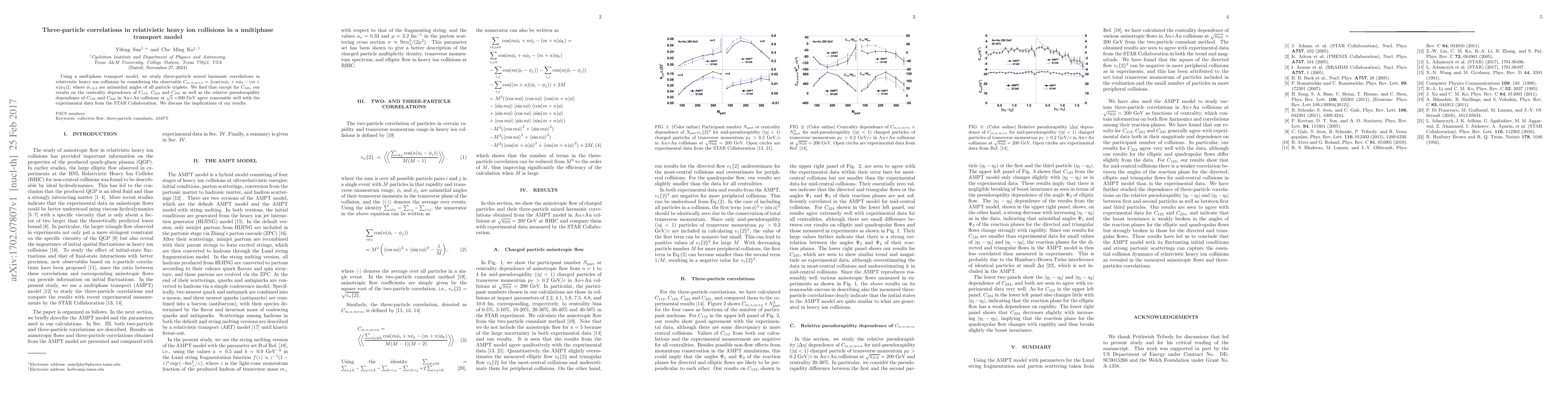This paper investigates three-particle mixed harmonic correlations in relativistic heavy ion collisions using a multiphase transport model, finding good agreement between theoretical predictions and STAR experimental data for most correlations except $C_{123}$. The study discusses the implications for understanding the dynamics of these collisions.