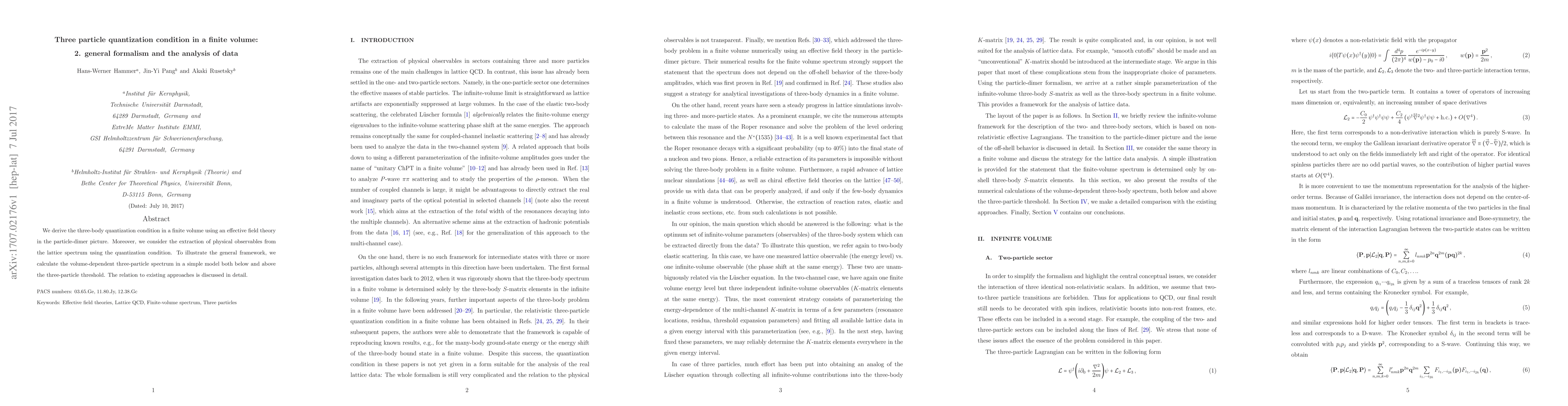 This paper derives the three-body quantization condition in a finite volume using effective field theory and analyzes the resulting three-particle spectrum in a simple model, comparing it to existing methods. The study also discusses the extraction of physical observables from the lattice spectrum based on this quantization condition.