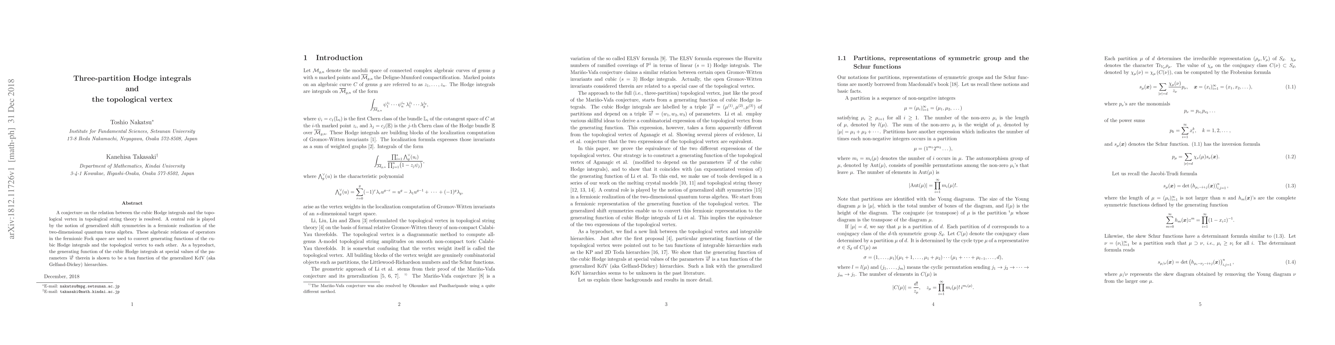 A conjecture on the relation between the cubic Hodge integrals and the topological vertex in topological string theory is resolved. A central role is played by the notion of generalized shift symmetries in a fermionic realization of the two-dimensional quantum torus algebra. These algebraic relations of operators in the fermionic Fock space are used to convert generating functions of the cubic Hodge integrals and the topological vertex to each other. As a byproduct, the generating function of the cubic Hodge integrals at special values of the parameters therein is shown to be a tau function of the generalized KdV (aka Gelfand-Dickey) hierarchies.