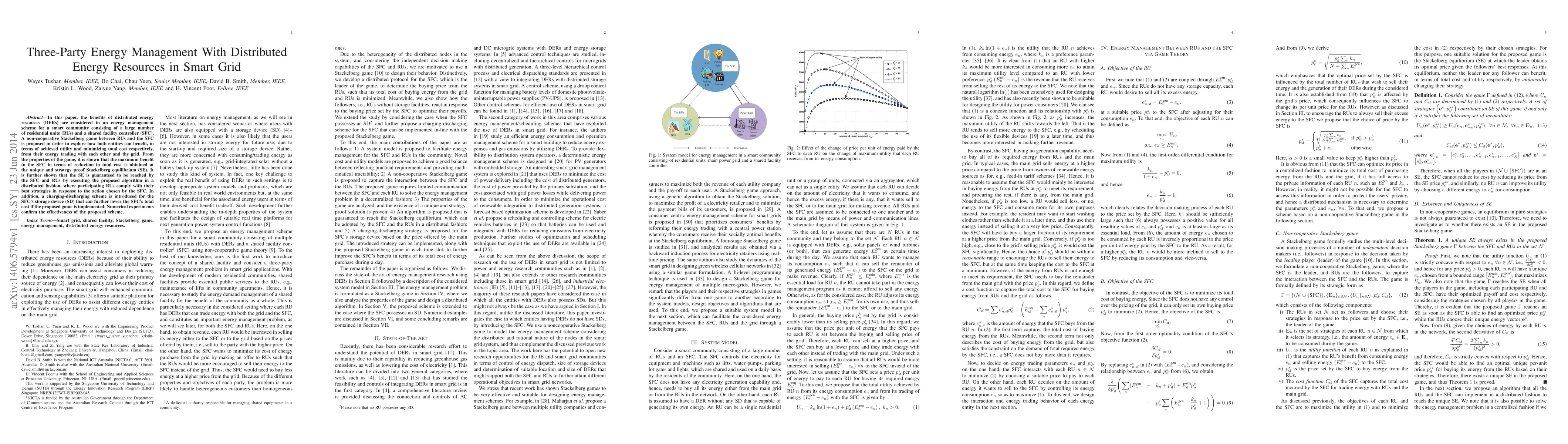 This paper proposes a non-cooperative Stackelberg game for energy management in smart communities, where residential units and a shared facility controller optimize utility and minimize costs through energy trading. The unique Stackelberg equilibrium ensures maximum cost reduction for the controller and is reached through a distributed algorithm.