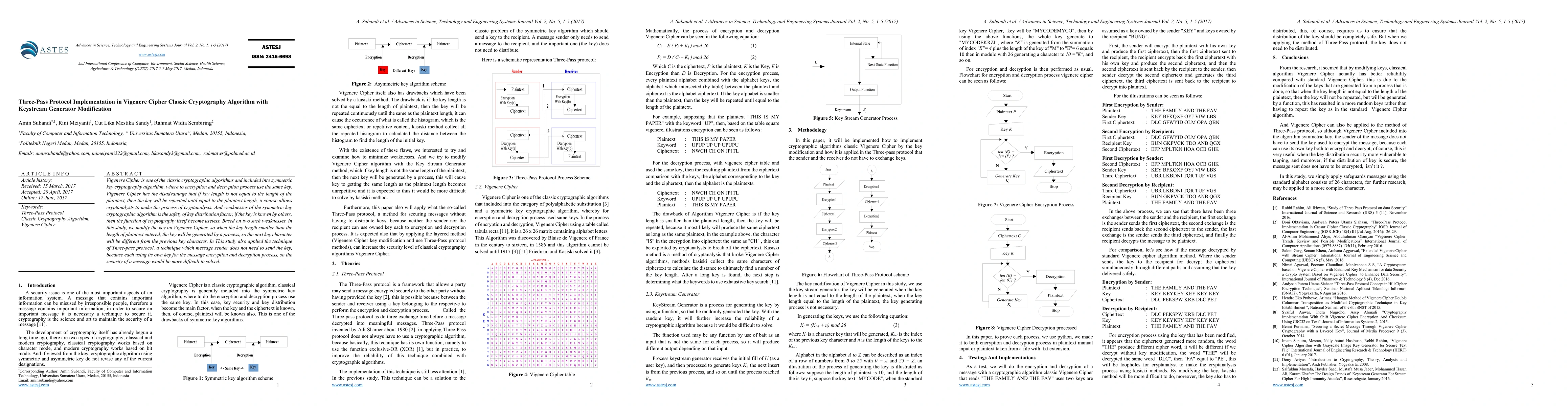 The paper presents a modified Vigenere Cipher with a keystream generator and integrates it with the Three-Pass protocol to enhance security and minimize key distribution vulnerabilities.