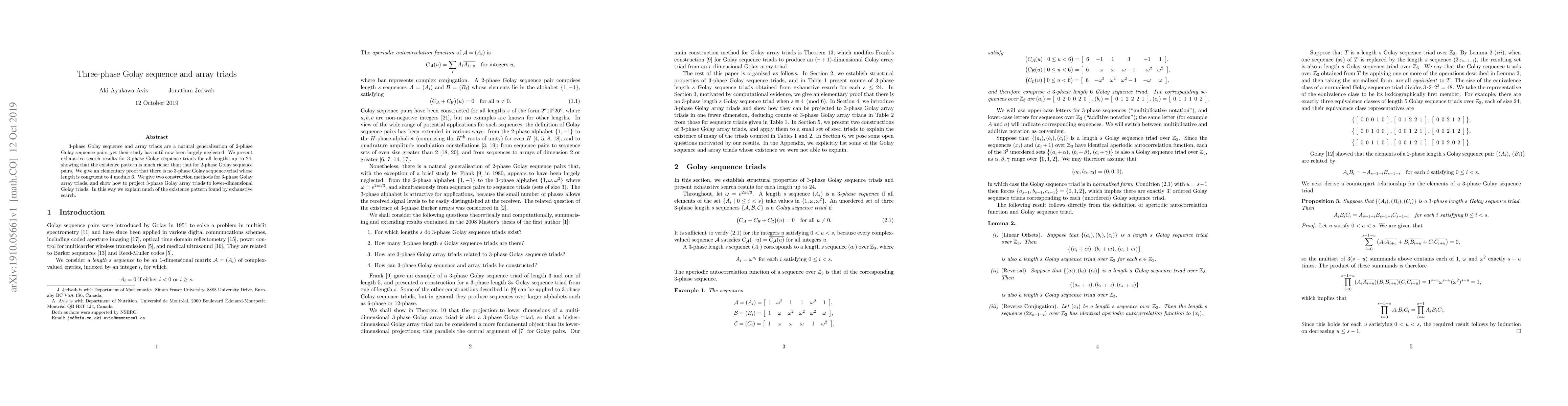Researchers discovered a richer existence pattern for 3-phase Golay sequence triads than previously thought, providing new methods for construction and projection of these sequences.