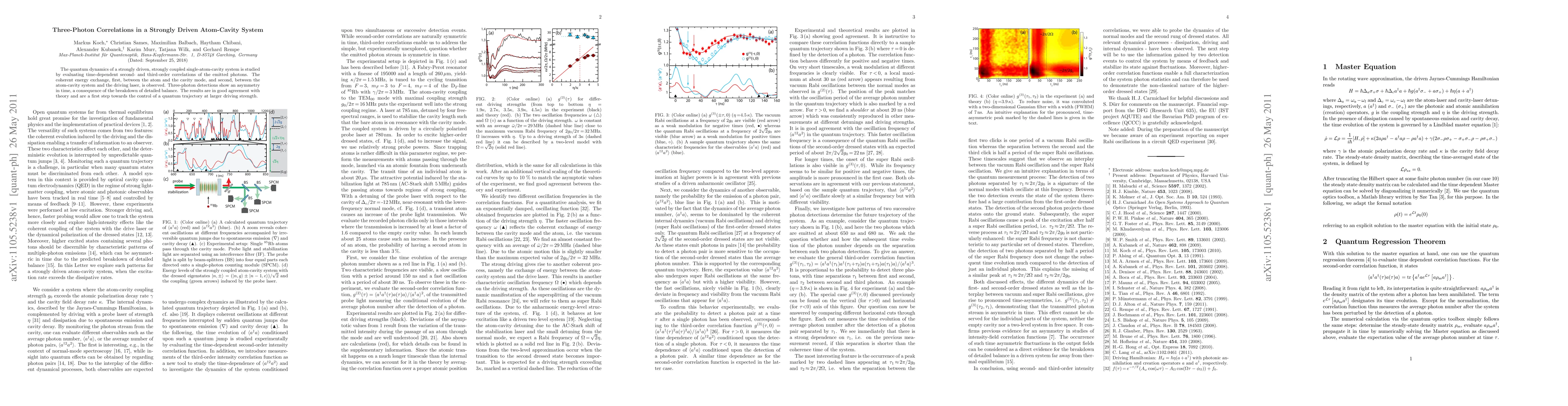 This study investigates quantum dynamics in a strongly driven atom-cavity system, revealing second- and third-order photon correlations. Observations show coherent energy exchange and a time-asymmetric three-photon detection, indicating a breakdown of detailed balance, aligning well with theoretical predictions.
