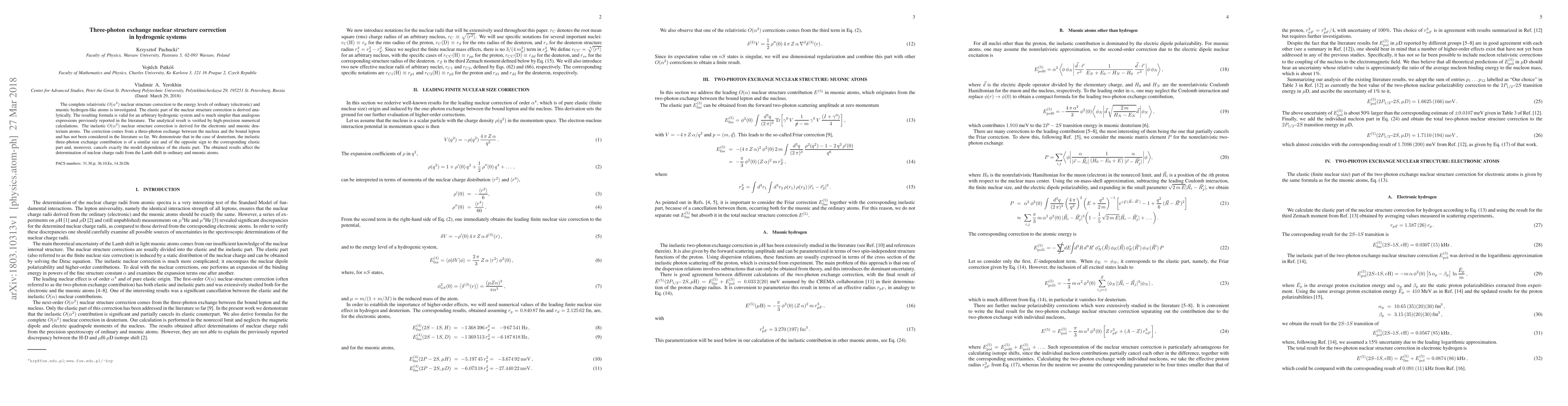 This paper investigates the complete relativistic $O(\alpha^2)$ nuclear structure correction for hydrogenic systems, deriving an analytically simpler formula for the elastic part and introducing a new inelastic correction from three-photon exchange for electronic and muonic deuterium, which cancels the model dependence of the elastic part.