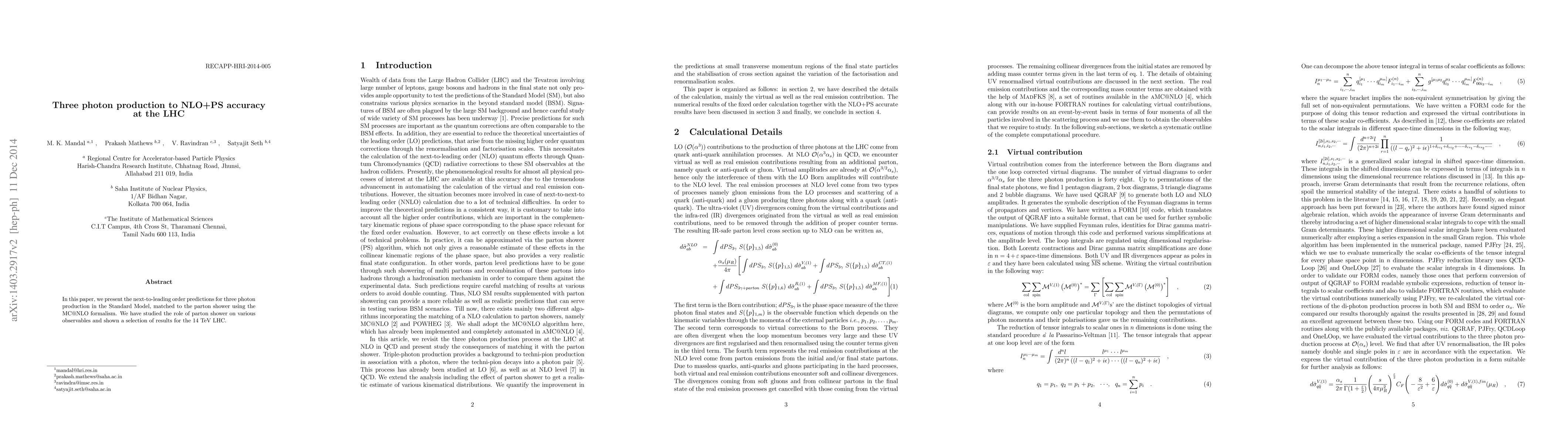 Researchers have calculated predictions for three photon production at the LHC with high accuracy, using a combination of next-to-leading order theory and parton shower simulations.
