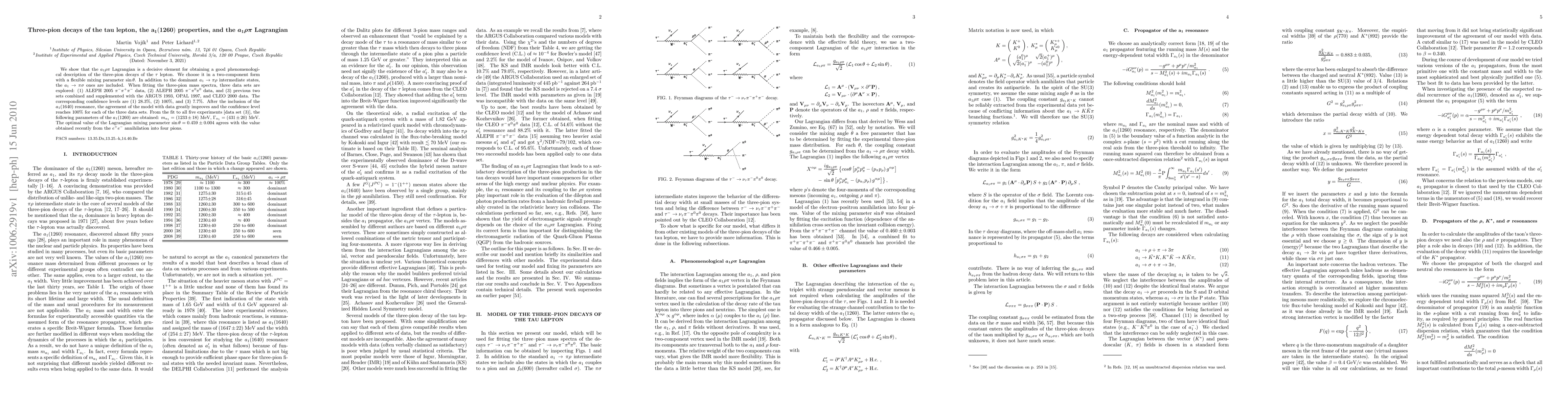This paper demonstrates that the a_1-rho-pi Lagrangian is crucial for accurately describing the three-pion decays of the tau lepton, achieving a good fit to experimental data from multiple sources. The inclusion of the a_1(1640) resonance significantly improves the model's agreement with data, resulting in precise parameters for the a_1(1260) resonance and a consistent mixing parameter.