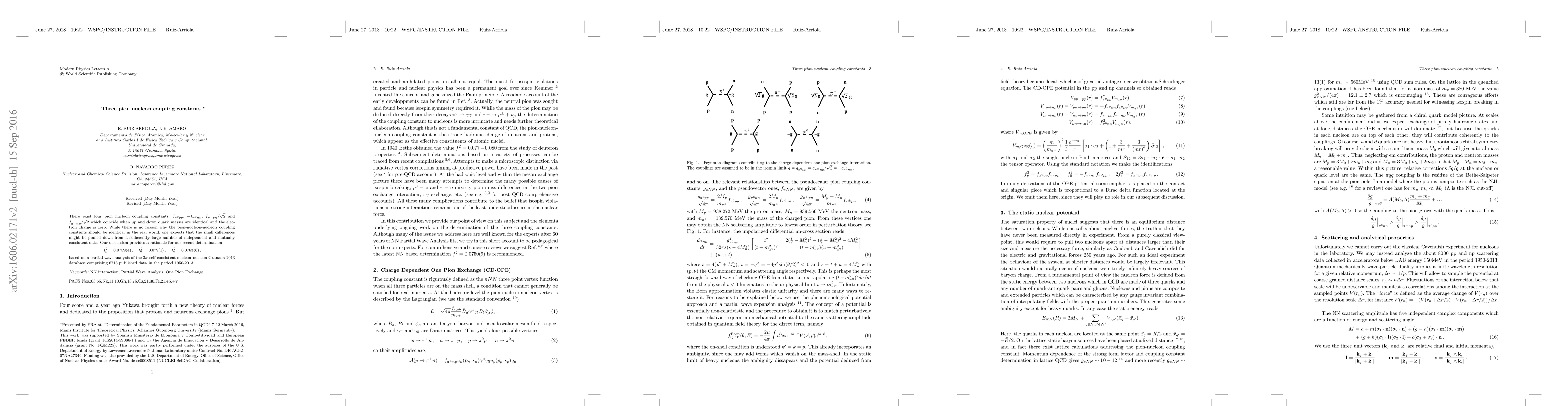 There exist four pion nucleon coupling constants, $f_{\pi^0, pp}$, $-f_{\pi^0, nn}$, $f_{\pi^+, pn} /\sqrt{2}$ and $ f_{\pi^-, np} /\sqrt{2}$ which coincide when up and down quark masses are identical and the electron charge is zero. While there is no reason why the pion-nucleon-nucleon coupling constants should be identical in the real world, one expects that the small differences might be pinned down from a sufficiently large number of independent and mutually consistent data. Our discussion provides a rationale for our recent determination $$f_p^2 = 0.0759(4) \, , \quad f_{0}^2 = 0.079(1) \,, \quad f_{c}^2 = 0.0763(6) \, , $$ based on a partial wave analysis of the $3\sigma$ self-consistent nucleon-nucleon Granada-2013 database comprising 6713 published data in the period 1950-2013.