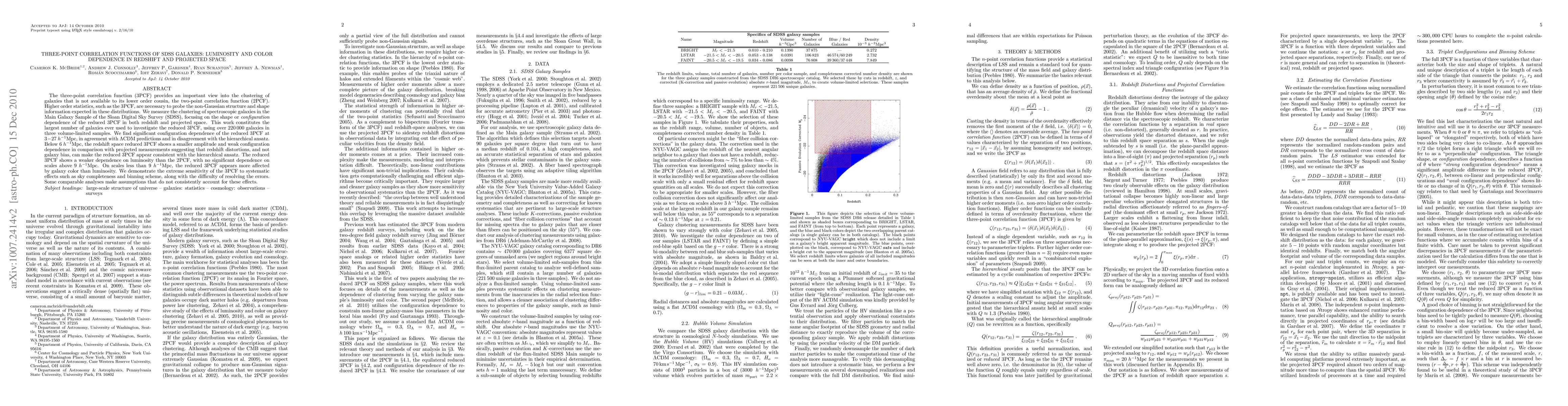 This study investigates the three-point correlation function (3PCF) of SDSS galaxies, revealing significant configuration dependence in redshift and projected space, and showing a weaker luminosity dependence compared to the 2PCF. The analysis highlights the sensitivity of 3PCF to systematic effects and challenges in resolving these errors.