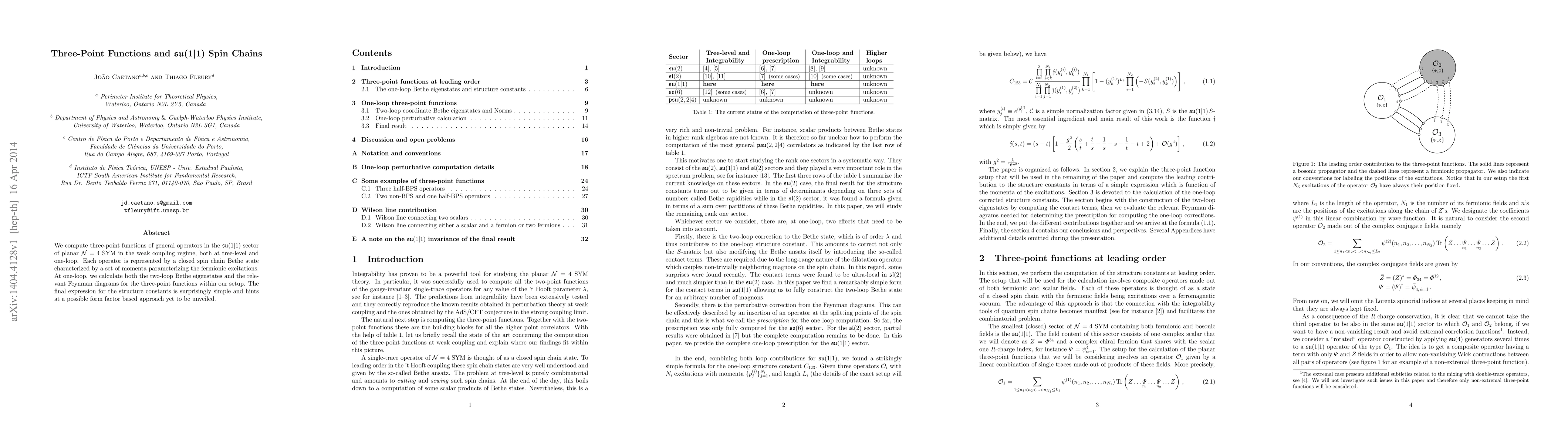 Researchers computed three-point functions in planar N=4 SYM at tree-level and one-loop, revealing a simple structure constant that suggests a form factor approach.