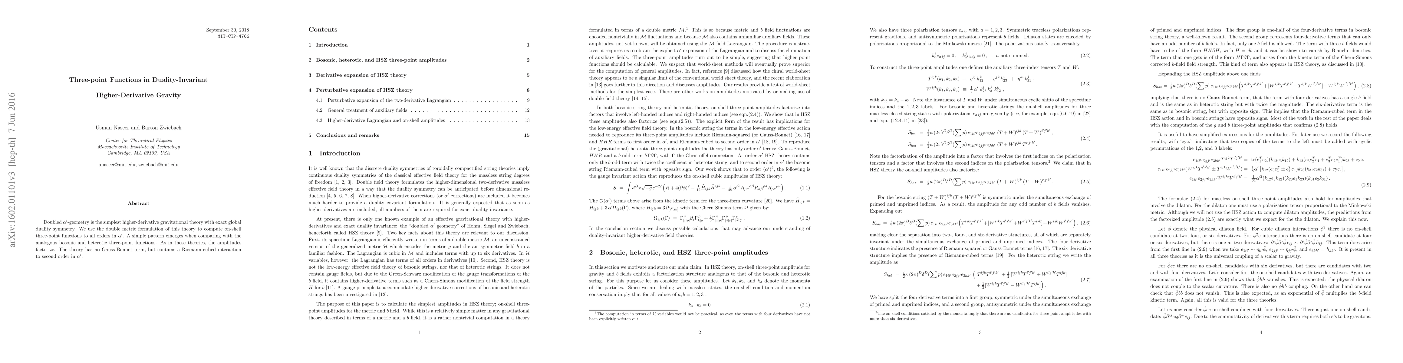 Doubled $\alpha'$-geometry is the simplest higher-derivative gravitational theory with exact global duality symmetry. We use the double metric formulation of this theory to compute on-shell three-point functions to all orders in $\alpha'$. A simple pattern emerges when comparing with the analogous bosonic and heterotic three-point functions. As in these theories, the amplitudes factorize. The theory has no Gauss-Bonnet term, but contains a Riemann-cubed interaction to second order in $\alpha'$.