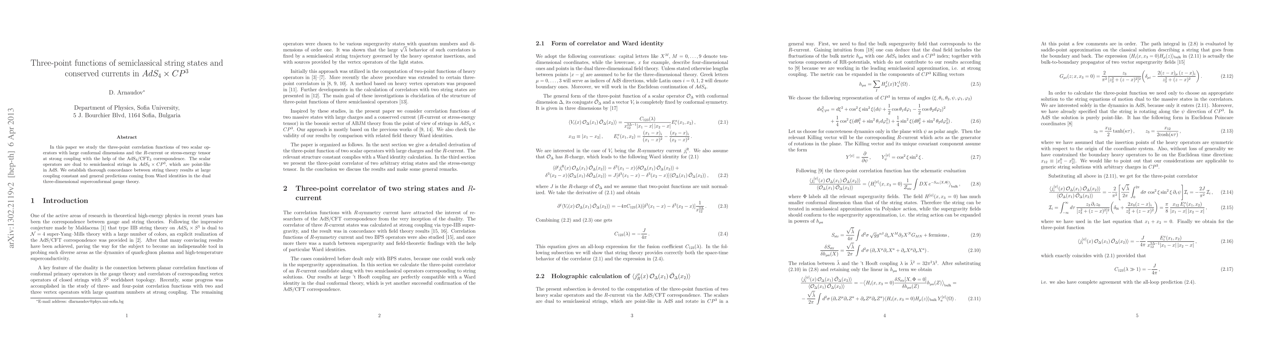 This paper investigates three-point correlation functions of large conformal dimension scalar operators and conserved currents in AdS_4 x CP^3 using the AdS_4/CFT_3 correspondence, showing agreement between string theory results at strong coupling and predictions from Ward identities in the dual CFT.