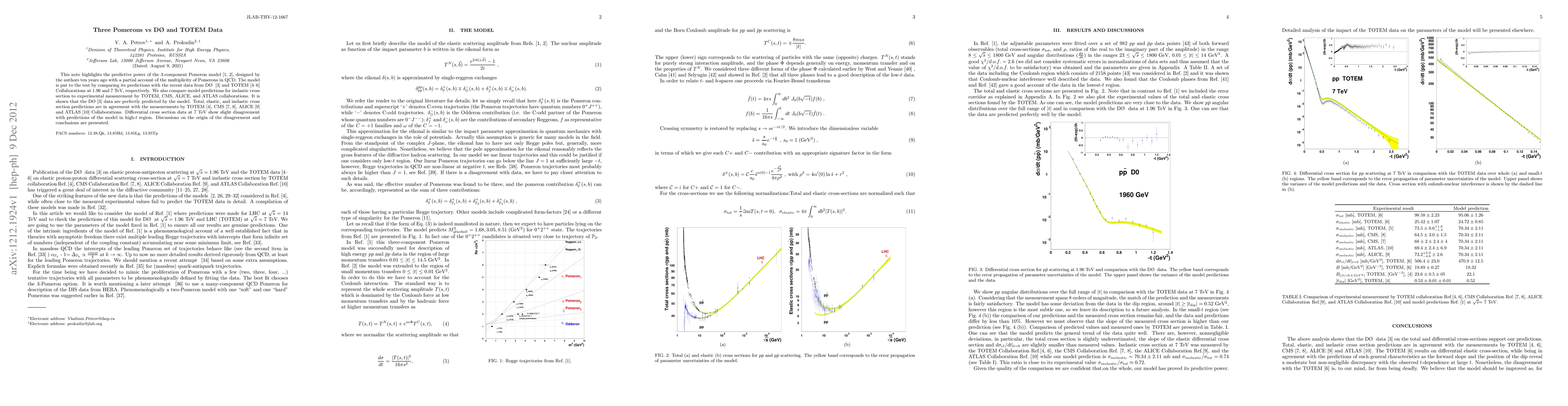 This note highlights the predictive power of the 3-component Pomeron model designed by the authors ten years ago with a partial account of the multiplicity of Pomerons in QCD. The model is put to the test by comparing its predictions with the recent data from DO and TOTEM Collaborations at 1.96 and 7 TeV, respectively. We also compare model predictions for inelastic cross section to experimental measurement by TOTEM, CMS, ALICE, and ATLAS collaborations. It is shown that the DO data are perfectly predicted by the model. Total, elastic, and inelastic cross section predictions are in agreement with the measurements by TOTEM, CMS, ALICE, and ATLAS Collaborations. Differential cross section data at 7 TeV show slight disagreement with predictions of the model in high-$t$ region. Discussions on the origin of the disagreement and conclusions are presented.