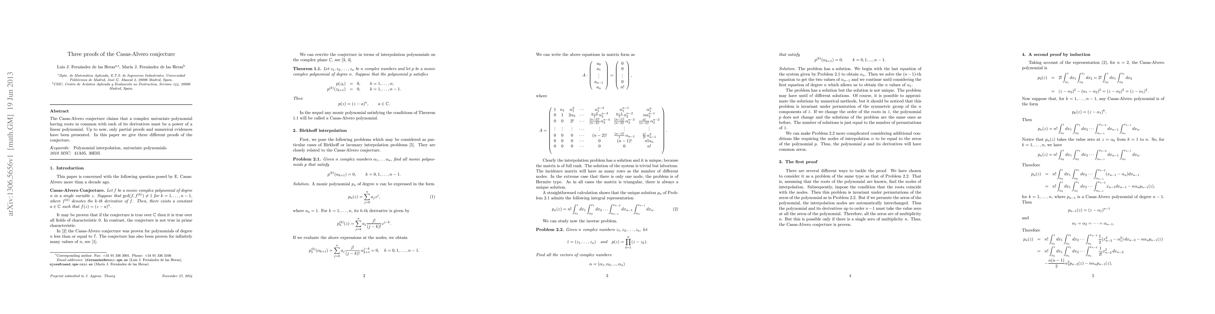Summary: This paper presents three distinct proofs for the Casas-Alvero conjecture, which concerns interpolation polynomials, addressing the lack of a general proof for the conjecture previously.