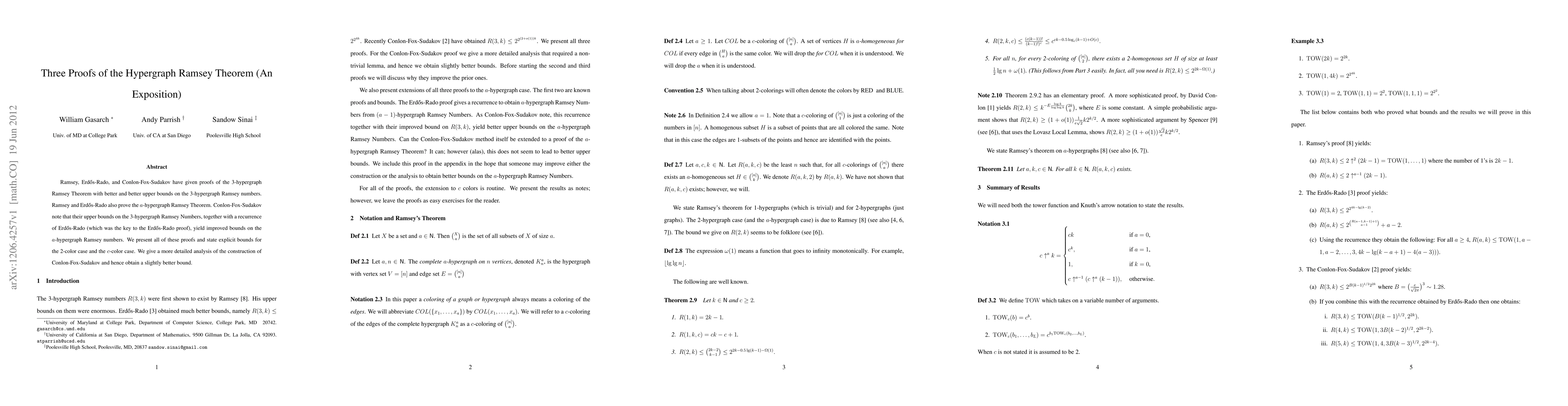 The paper presents detailed proofs and constructions for the 3-hypergraph Ramsey Theorem and extends them to a-hypergraphs, providing explicit bounds and recurrence analysis.