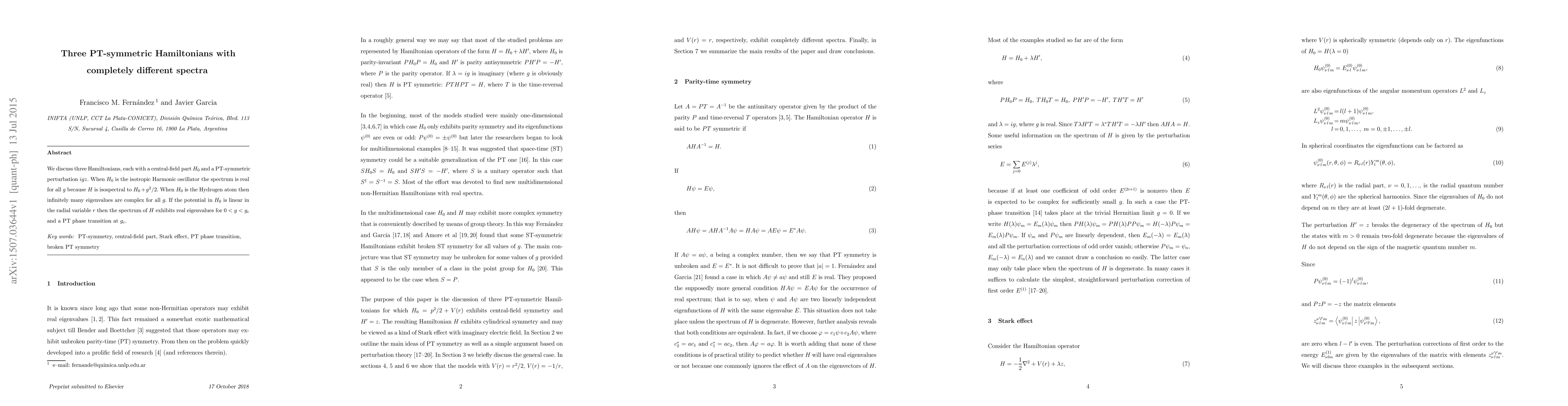 We discuss three Hamiltonians, each with a central-field part $H_{0}$ and a